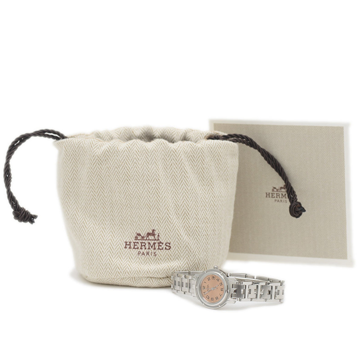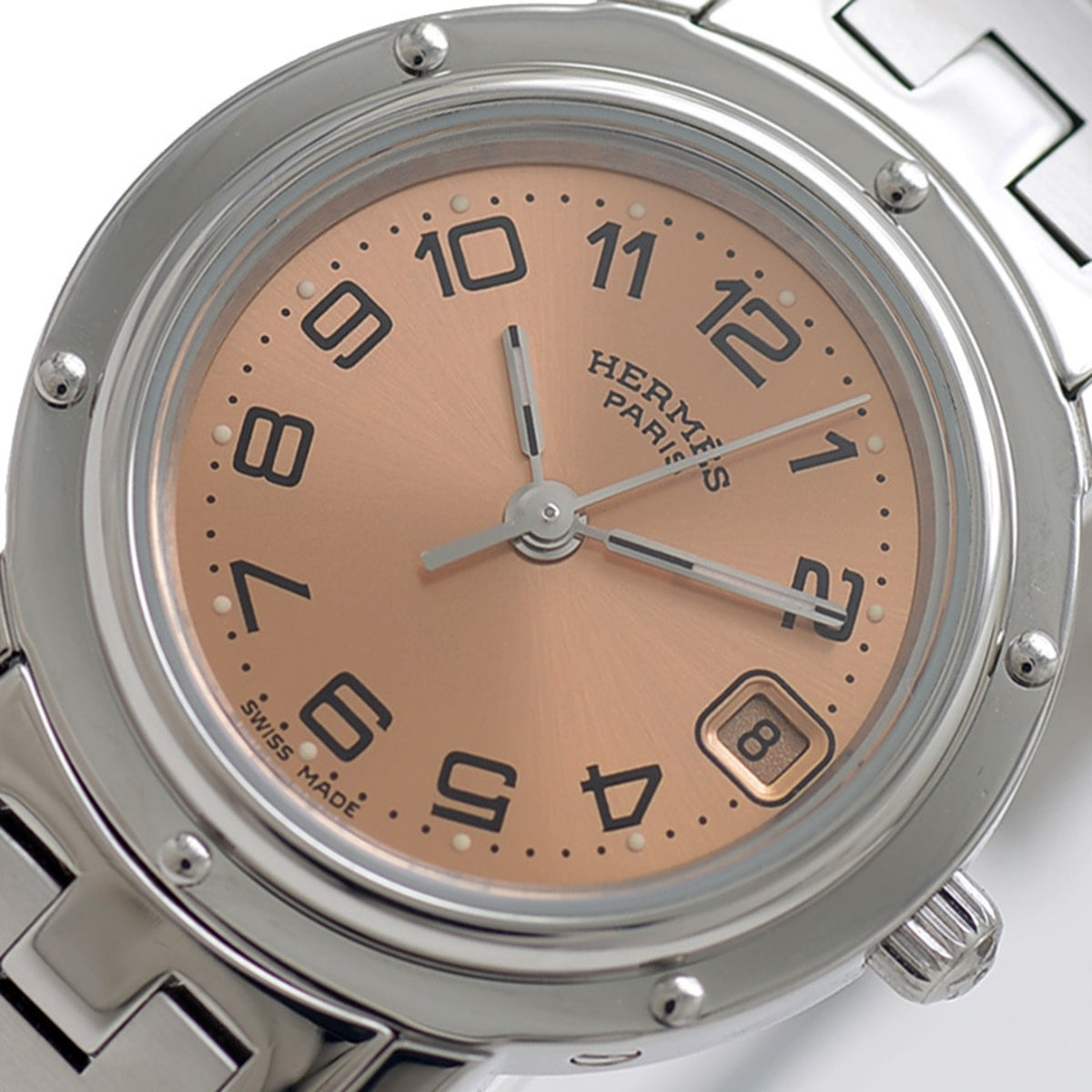 Pre-Owned Herm?s Clipper Women's Watch with Pink Gold Dial, Stainless Steel Quartz Movement, CL4.210