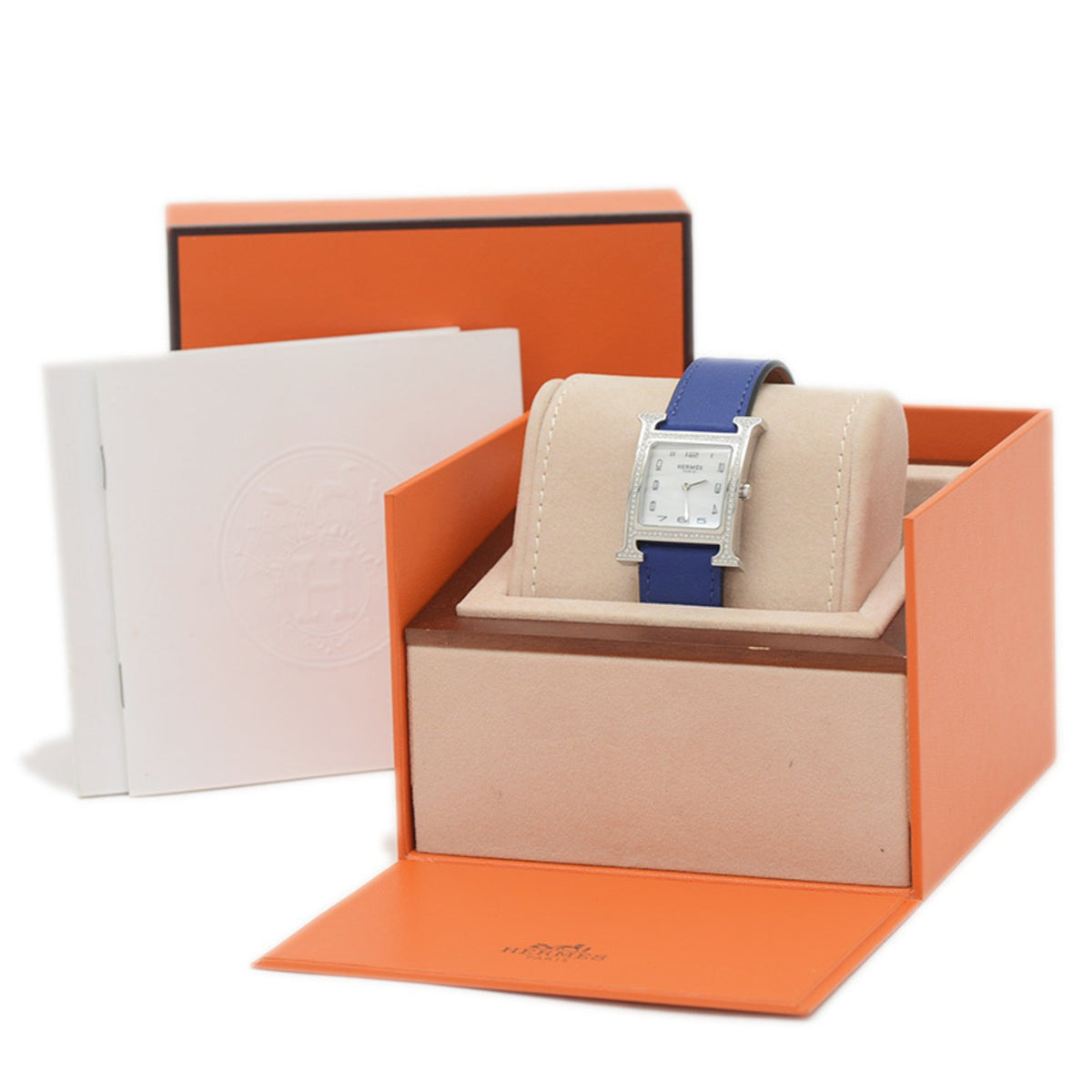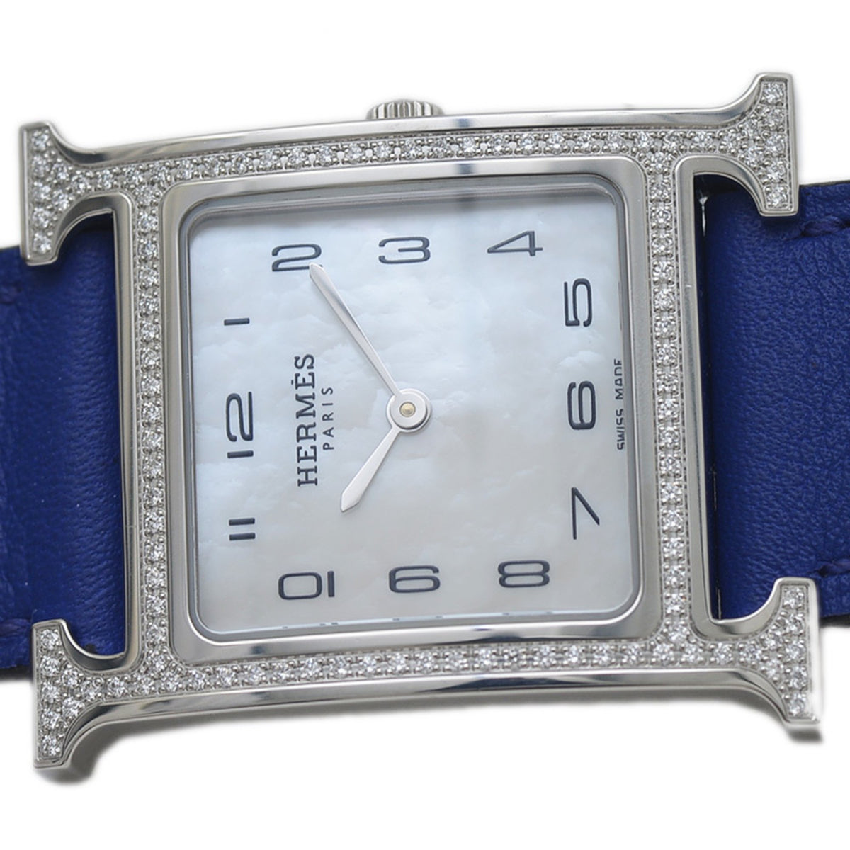 Pre-Owned Herm?s H Watch PM Women's Shell Dial with Stainless Steel Diamonds and Leather Strap, Quartz Movement, HH1.531