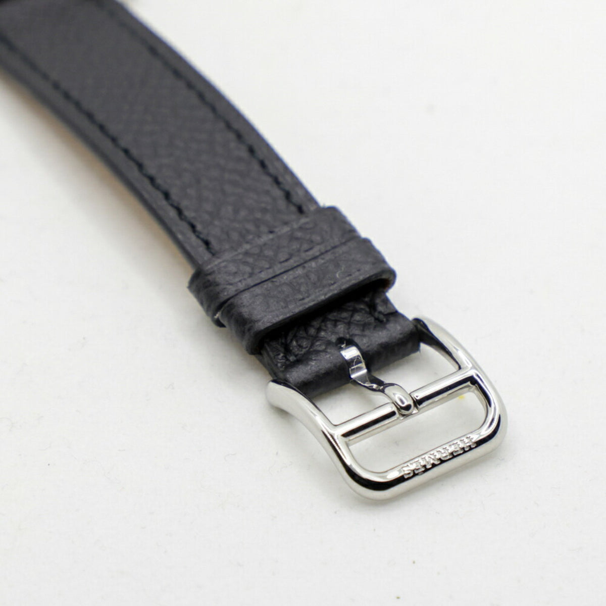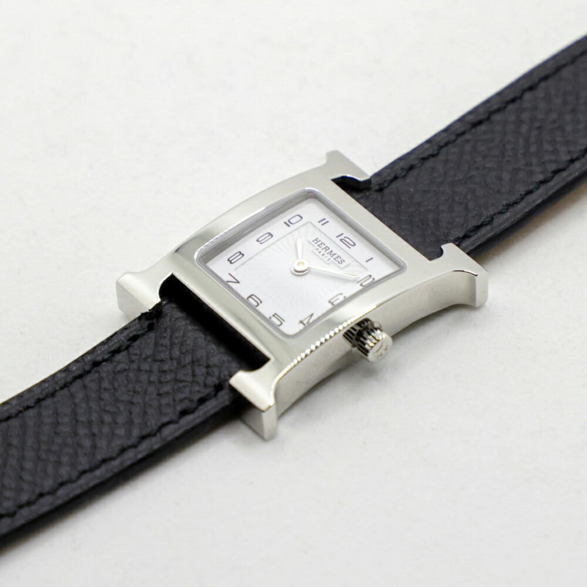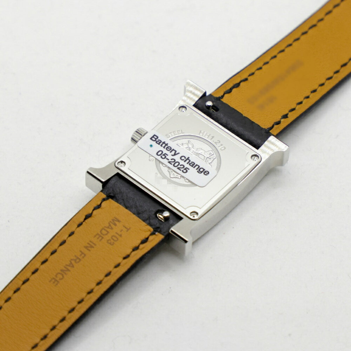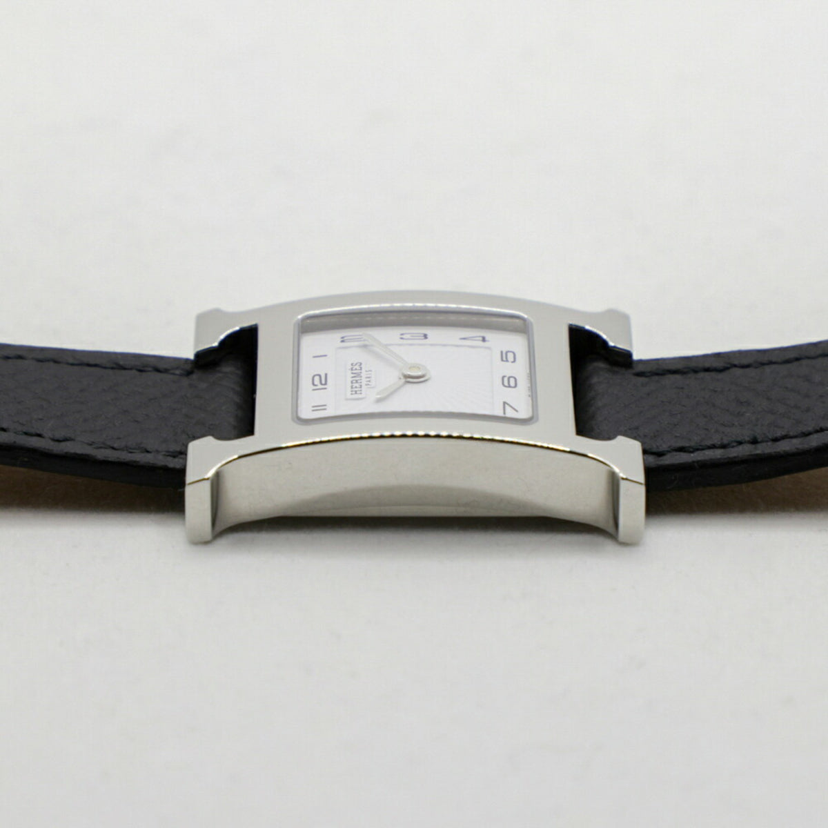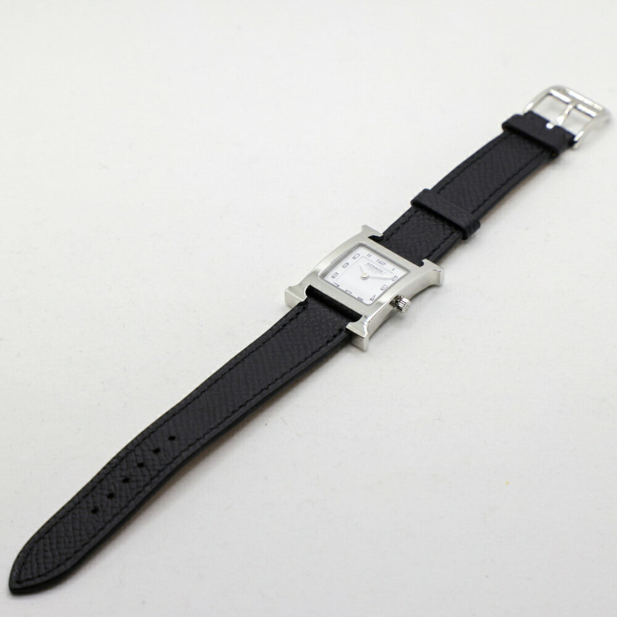 Pre-Owned Herm?s H Watch, white dial, stainless steel, leather, quartz movement, HH1.210, silver and black, women's watch, S 1595