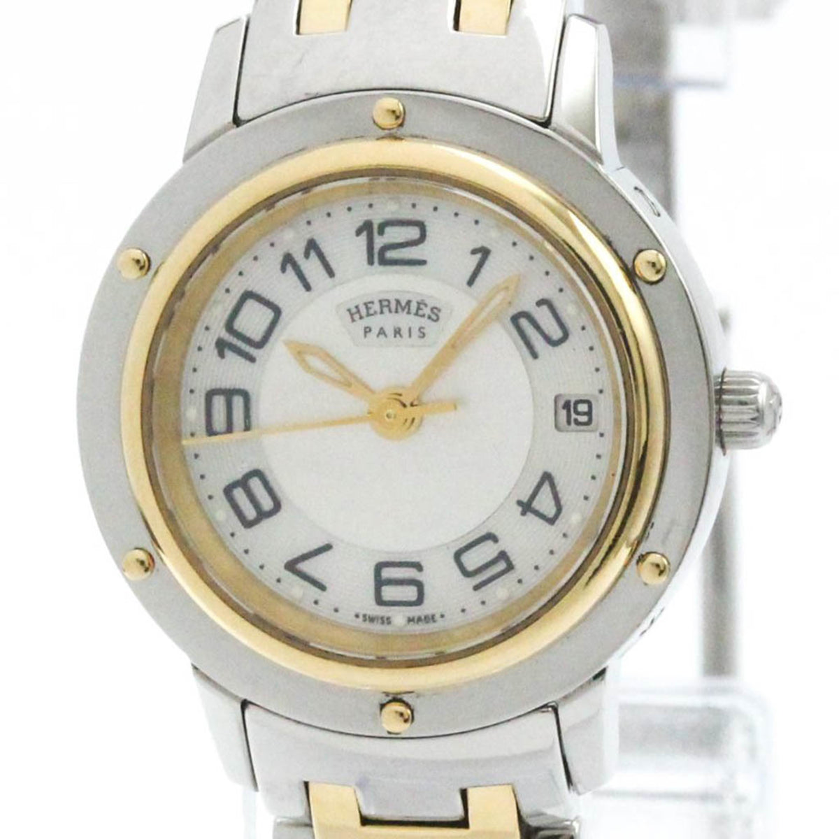 Pre-Owned HERMES Clipper MOP Dial Gold Plated Steel Quartz Ladies Watch Polished