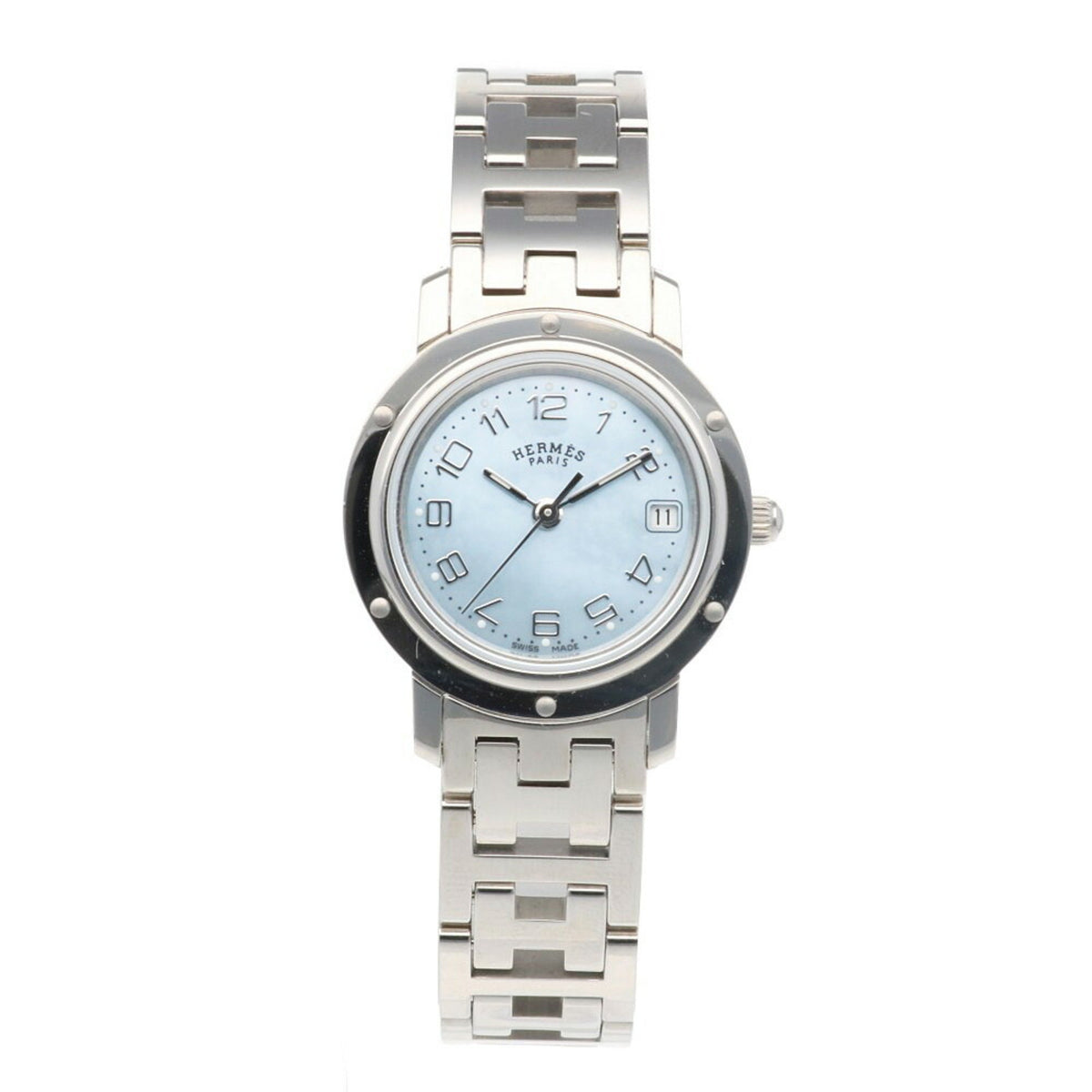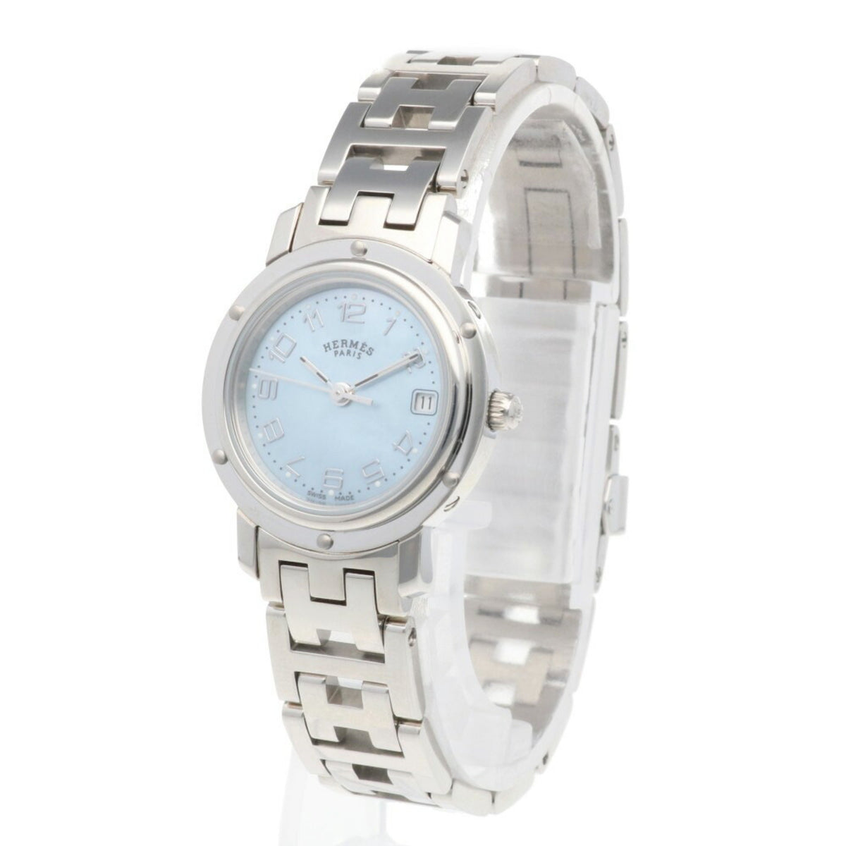 Gebrauchte Hermes Clipper Nacle Uhr Edelstahl CL4.210 Quarz Damen HERMES Blaue Schale