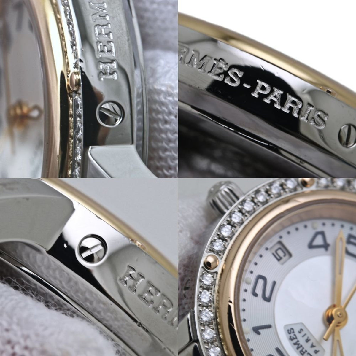 Pre-Owned HERMES Clipper Nacr? Classic Bezel Diamond CP1.222.212 4970 035323WW00 Women's Watch in PGP (Pink Gold Plated) xSS 40117
