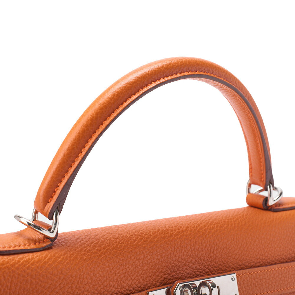 Gebrauchte Kelly 32 Handtasche, Togo, Orange, Silberfarbene Hardware, Gebraucht