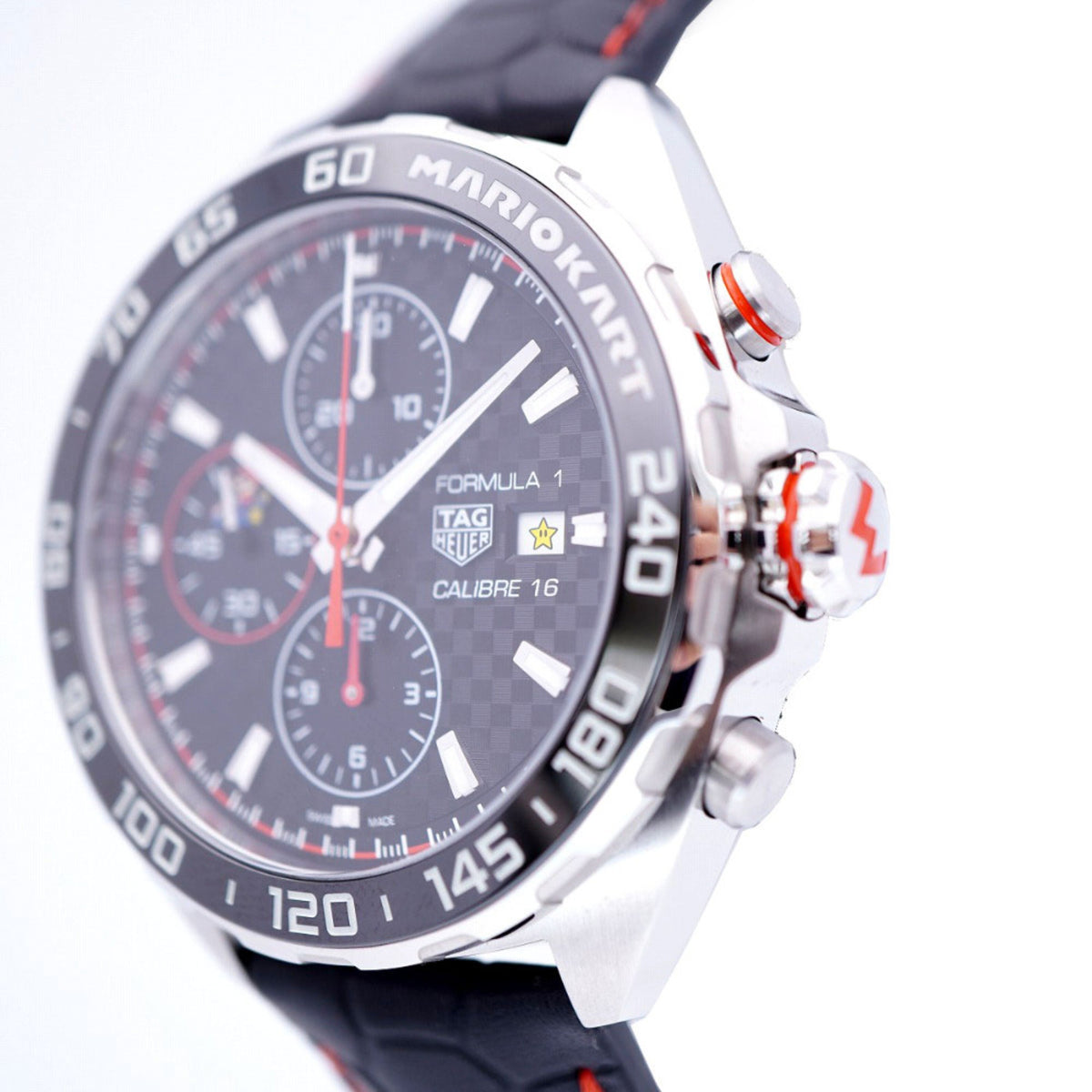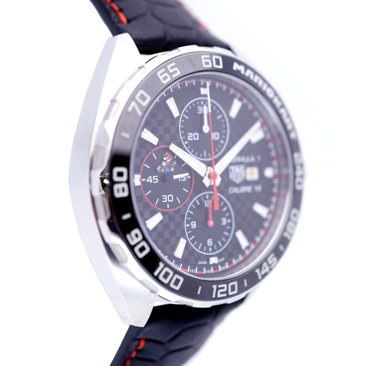 Pre-Owned Like new TAG Heuer Formula 1 Mario Kart Chronograph CAZ201E.FC6517 Automatic Watch with Stainless Steel/Embossed Leather and Black Dial, Model 0102, Men's