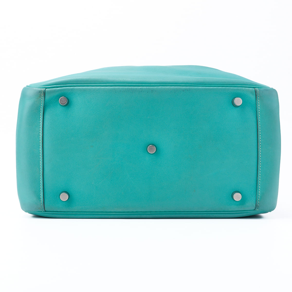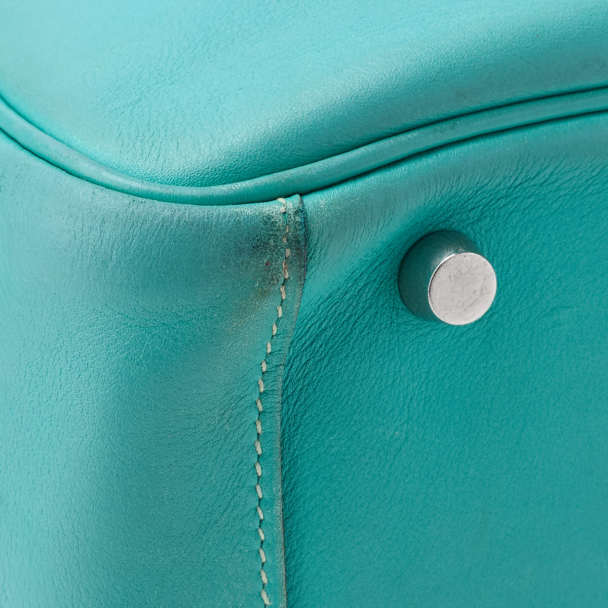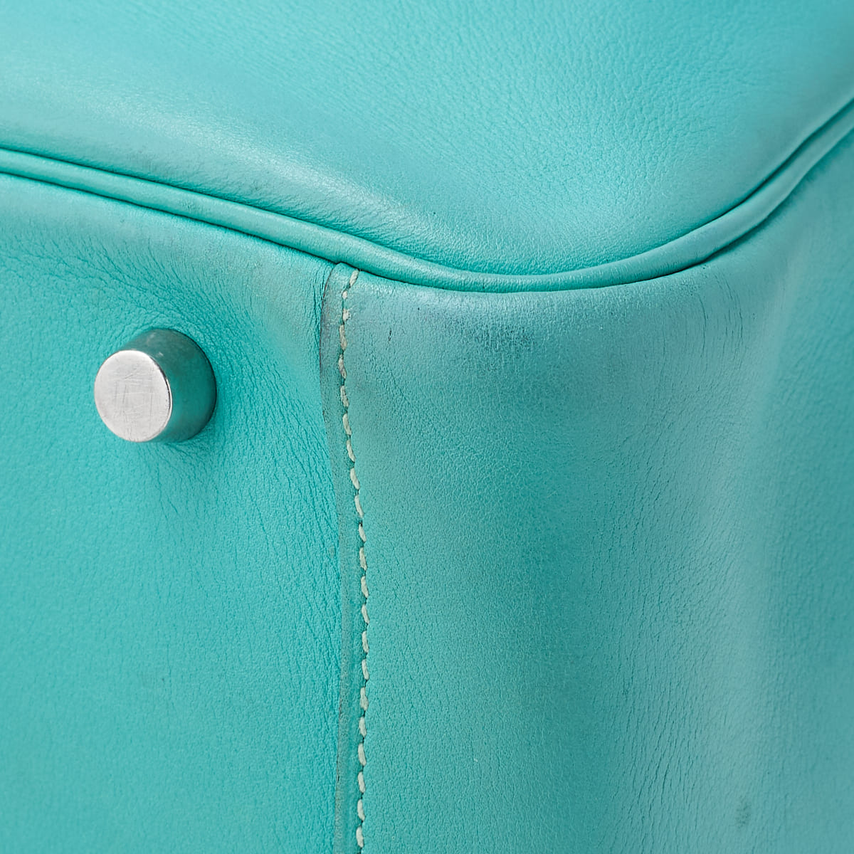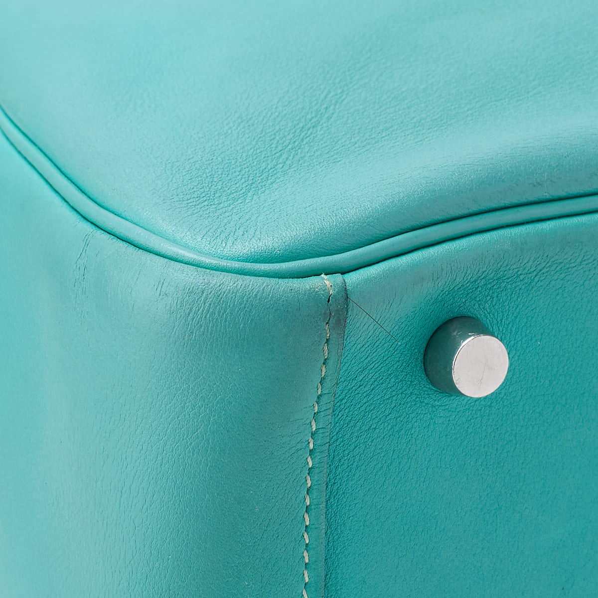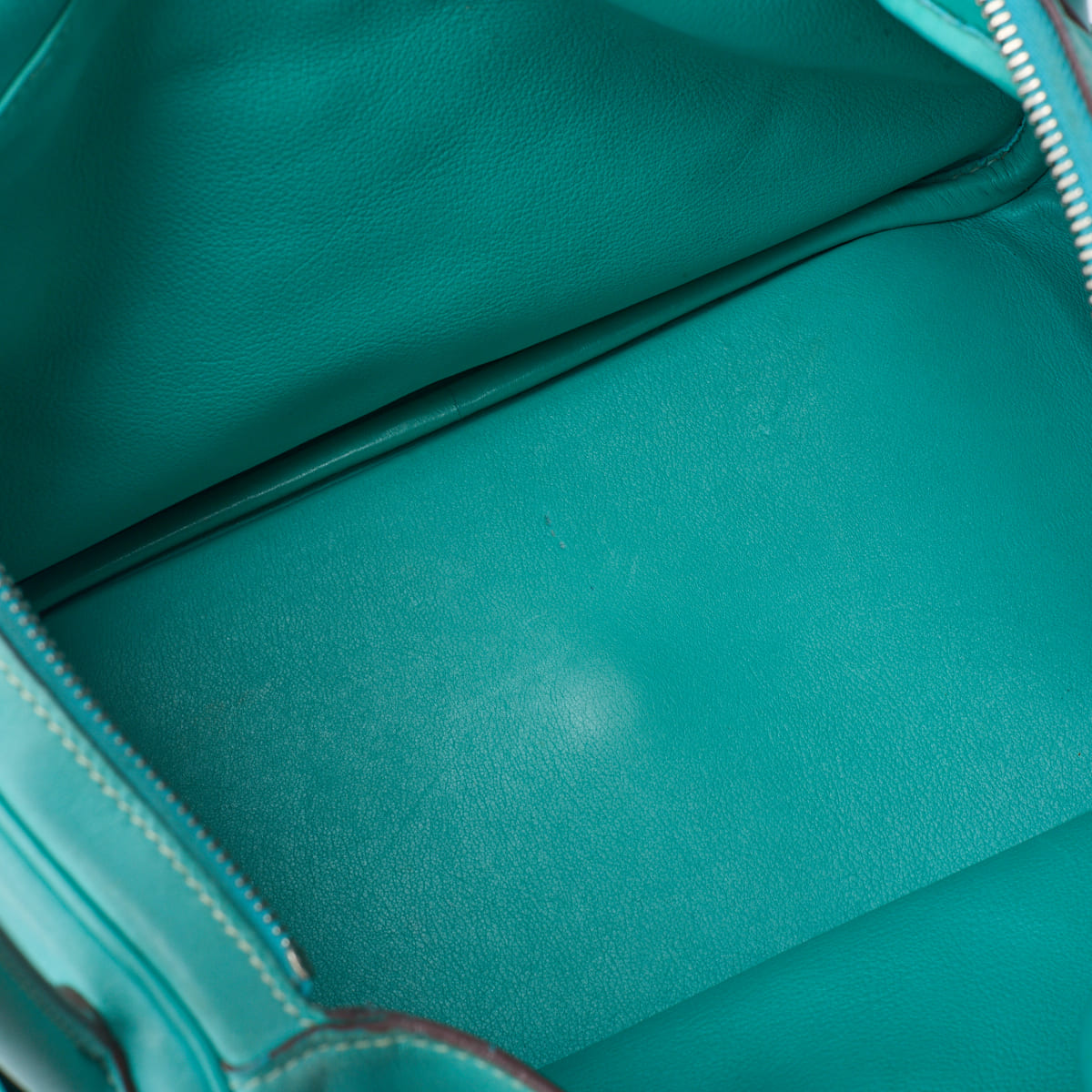 Entdecken Sie die Eleganz der HERMES Hermes Lindy 30 2way Schultertasche in der atemberaubenden Farbe Ragon Lagon mit exquisiten silbernen Metallbeschlägen. Dieses beliebte Schmuckstück aus luxuriösem Swift-Leder verkörpert Raffinesse und Vielseitigkeit und ist das perfekte Accessoire für die moderne Frau.