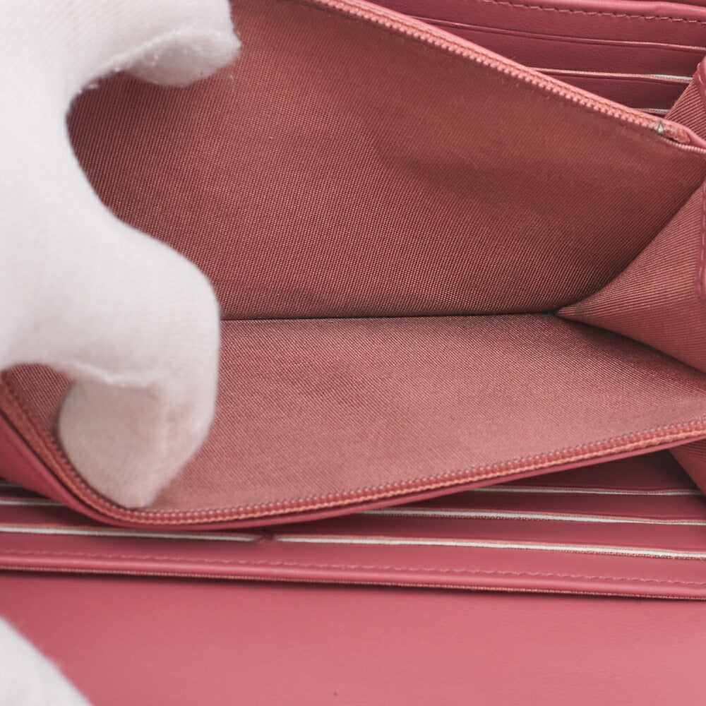 Gebrauchte zweifach faltbare lange Brieftasche Matelassé CC Filigrane Kaviarhaut Pink Goldfarbene Hardware Gebraucht