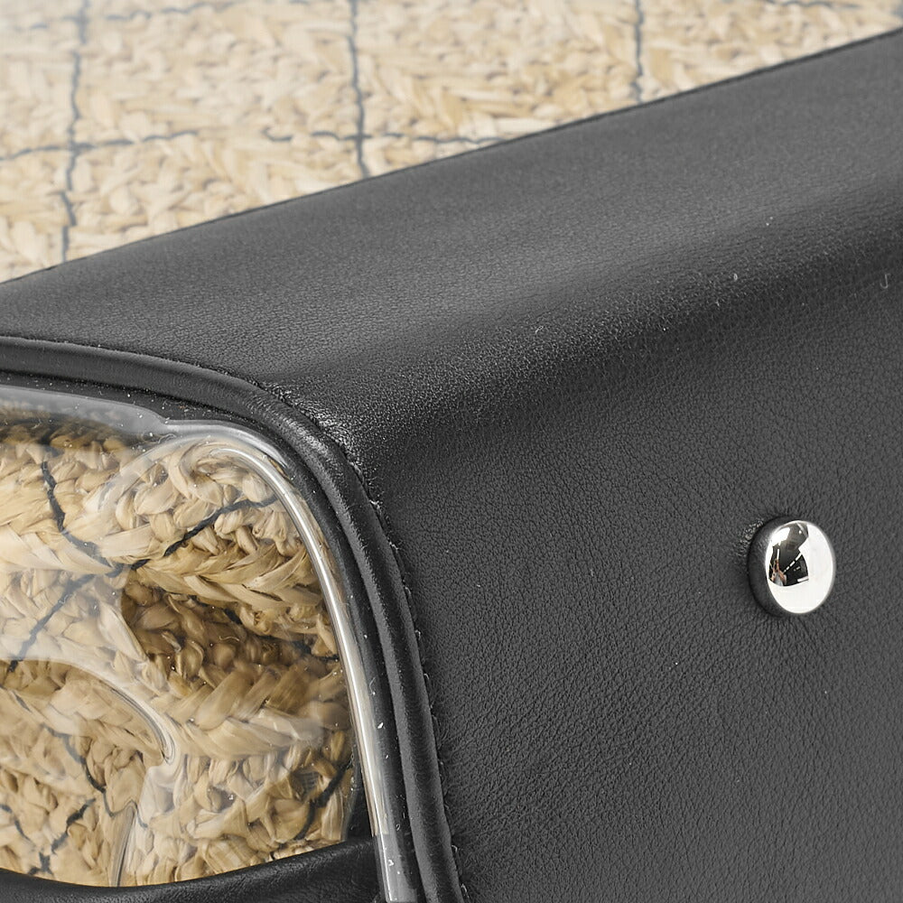 - Materialzusammensetzung: Hergestellt aus weichem Lammleder und strapazierfähigem Stroh, das eine einzigartige Textur bietet, die auffällt.