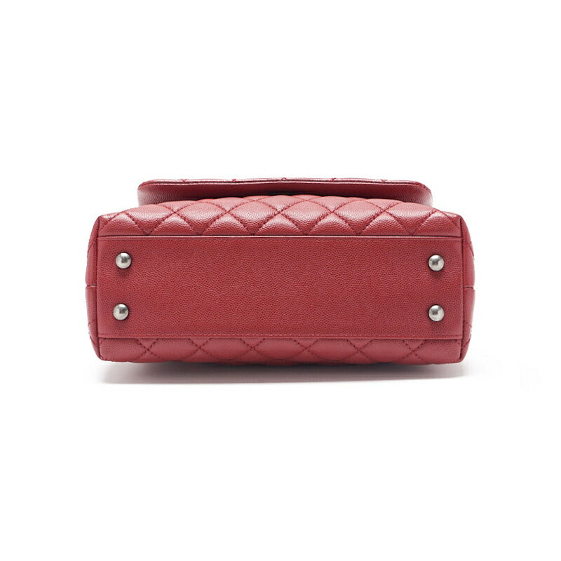Gebrauchte Handtasche Matelassé Coco Handle 2WAY Caviar Skin Rot Silberfarbene Hardware Gebraucht