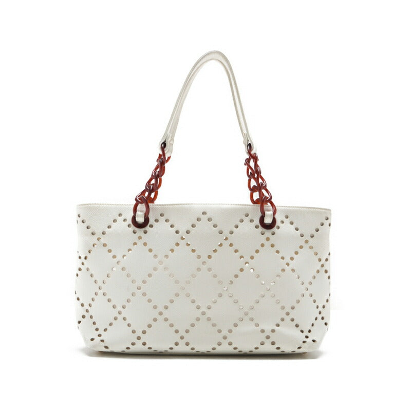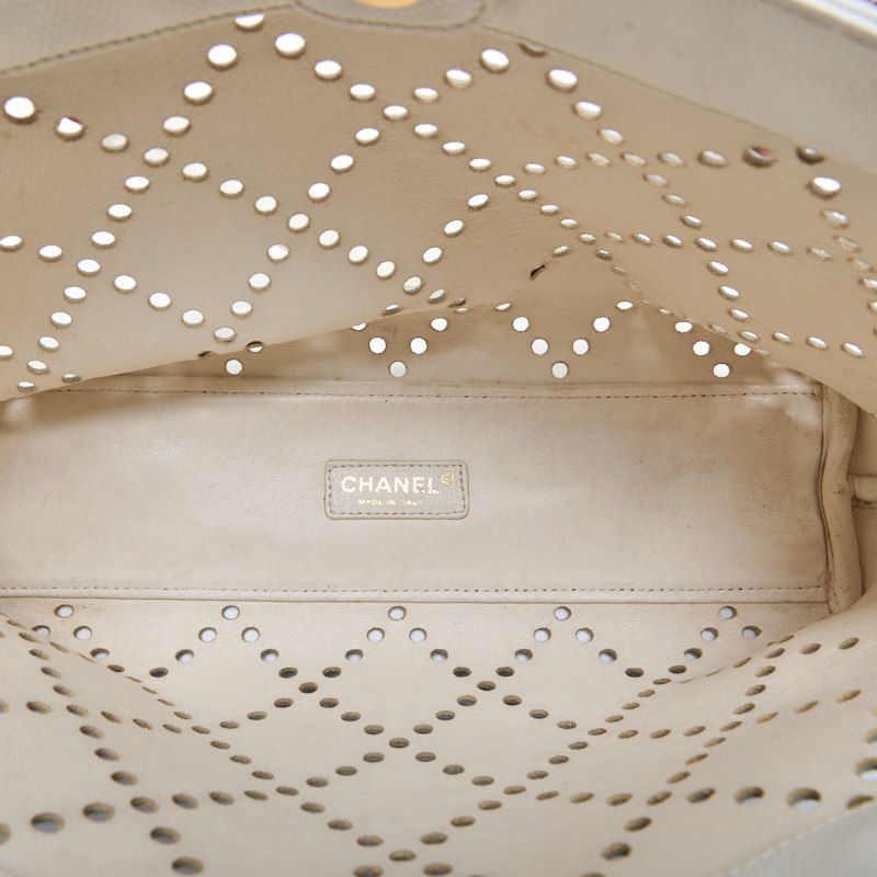 Gebrauchte Tragetasche, Matelassé, Coco Mark, Kaviarhaut, Weiß, Goldfarbene Metallteile, Gebraucht