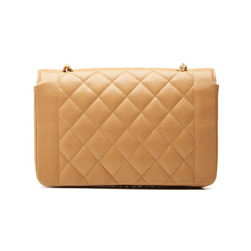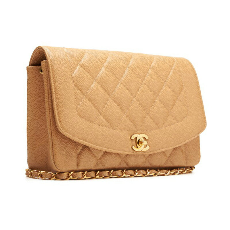 Gebrauchte Umhängetasche Matelassé Diana Flap Chain Shoulder Caviar Skin Beige Gold-Tone Hardware Pre-Owned