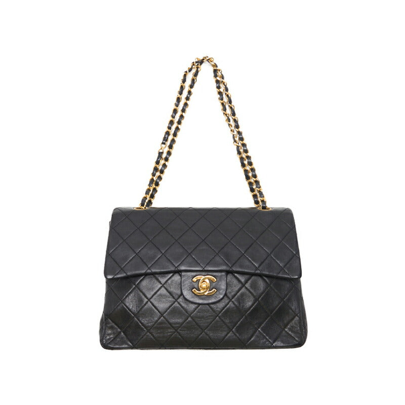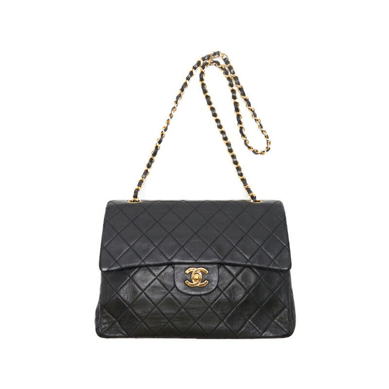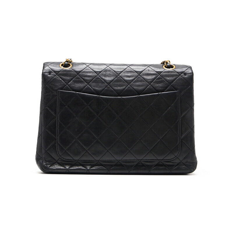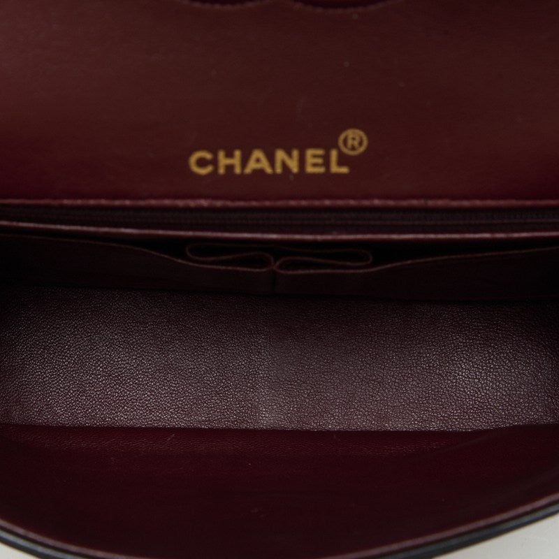 Pre-Owned Umhängetasche Matelassé Doppelklappe Kette Schulter Lammleder Schwarz Goldfarbene Hardware Pre-Owned