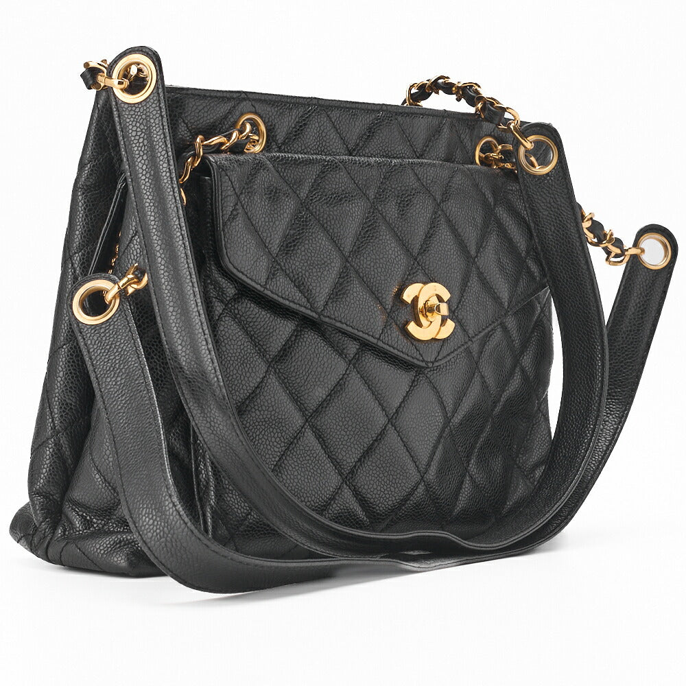 Gönnen Sie sich Luxus mit der CHANEL Matelassé Outside Flap Schultertasche aus exquisitem Kaviarleder in klassischem Schwarz. Diese Tasche ist nicht nur ein modisches Statement, sondern ein Symbol für Raffinesse und zeitlose Eleganz, die jede Frau verdient.