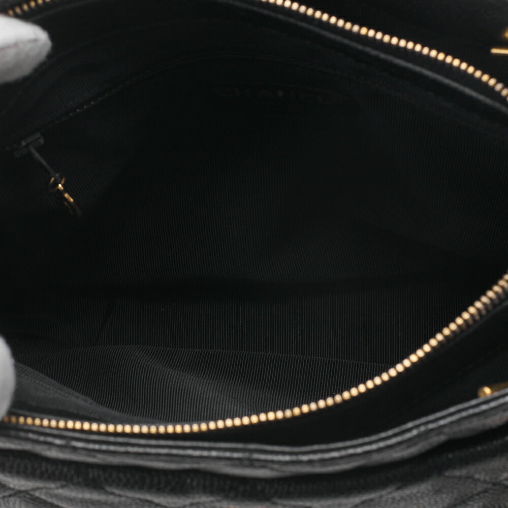 Gebrauchte Umhängetasche, Matelassé, Kaviarhaut, Schwarz, Goldfarbene Metallteile, Gebraucht
