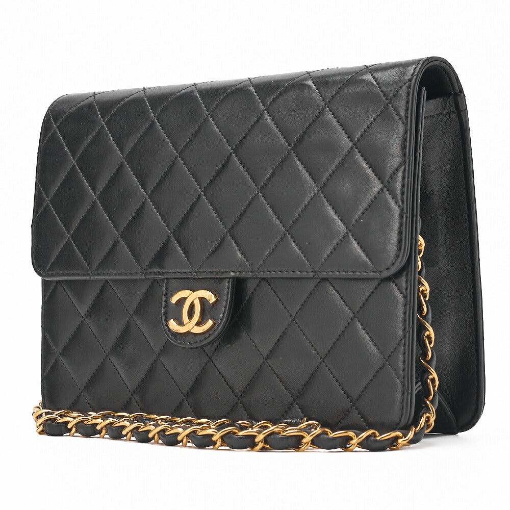 Gebrauchte Umhängetasche, Matelassé Push Lock Chain Shoulder, Lammleder, Schwarz, Goldfarbene Metallteile, Gebraucht