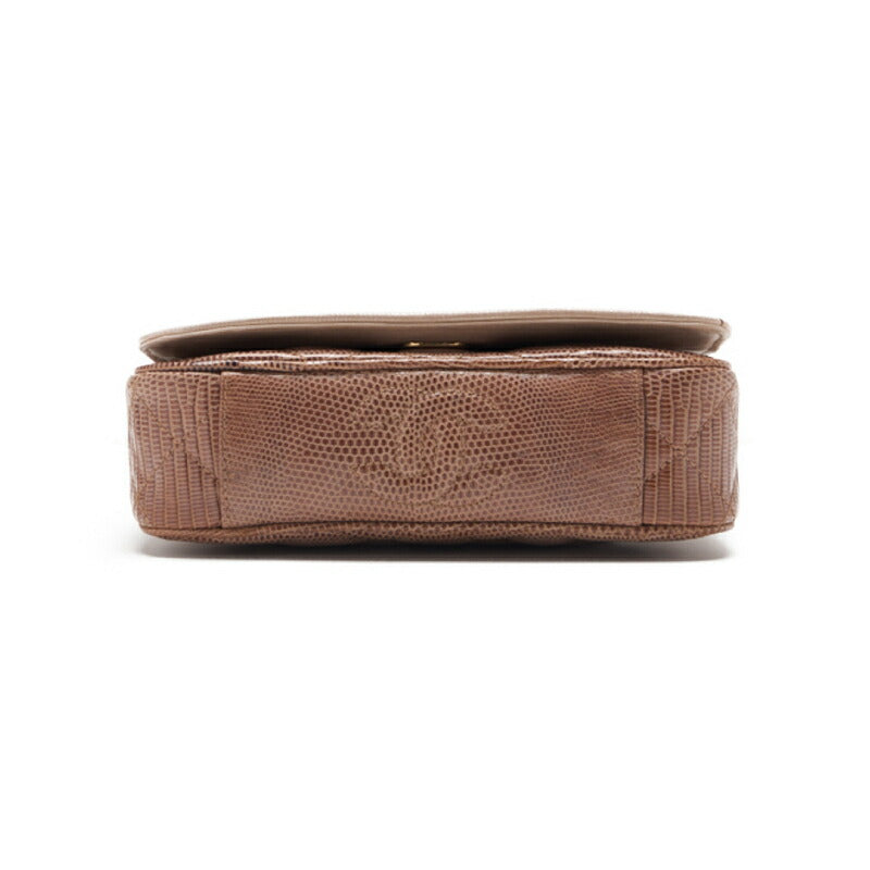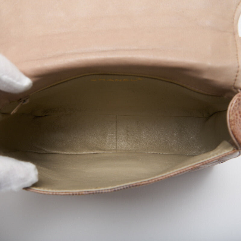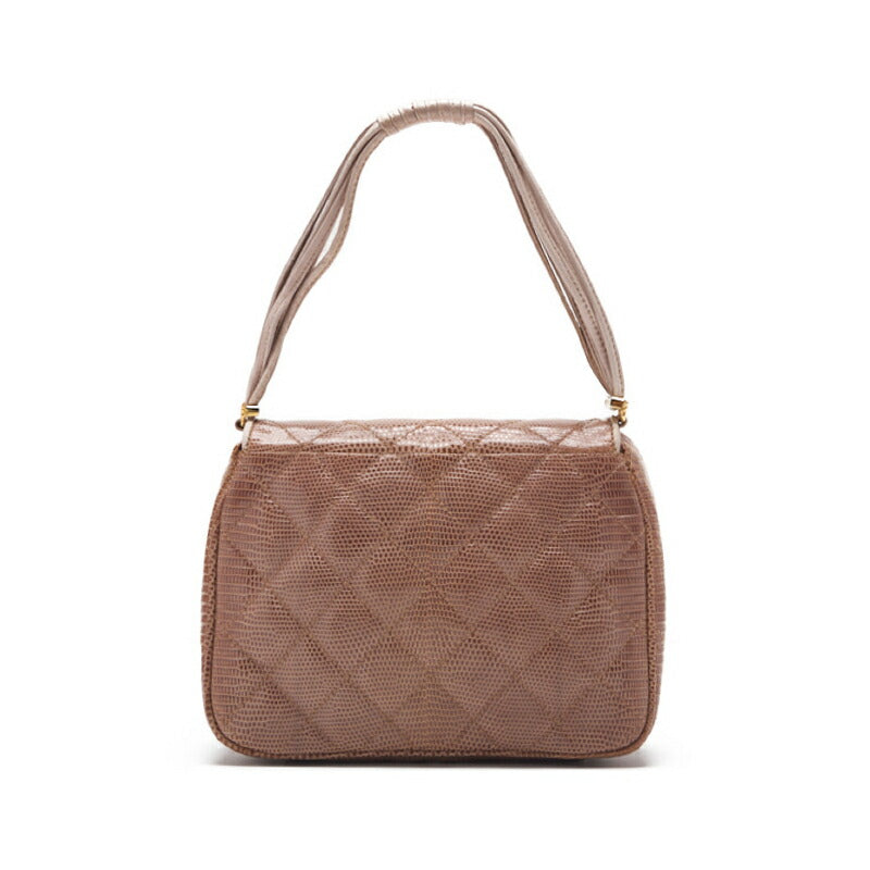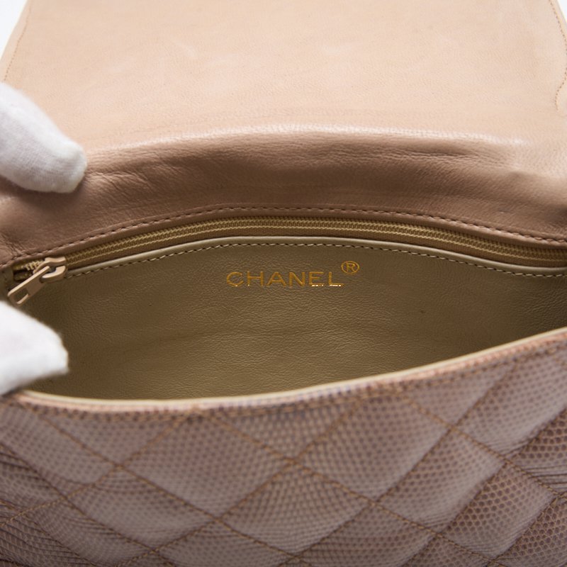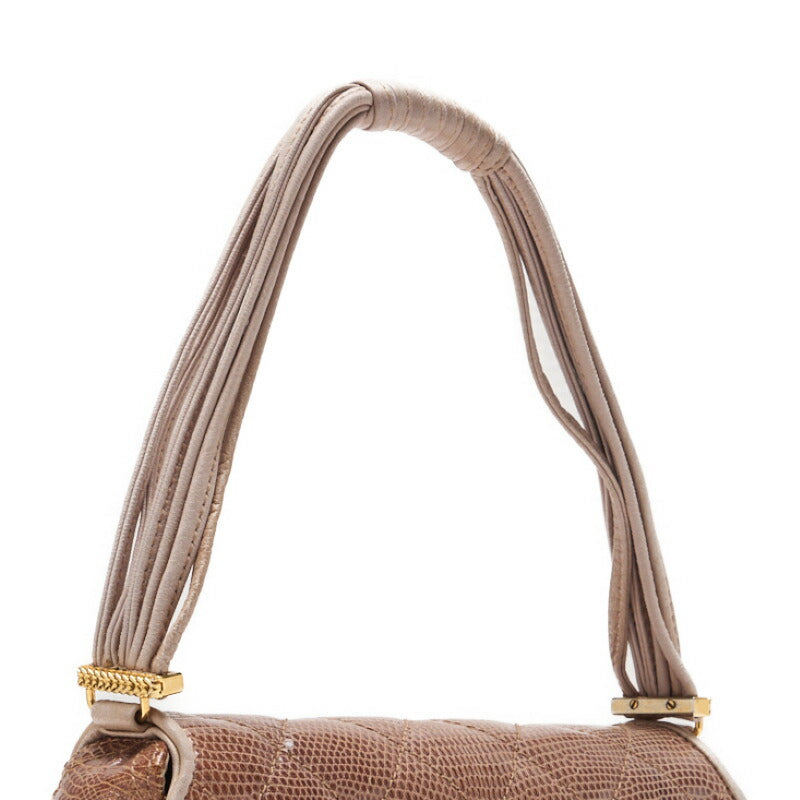 Gebrauchte Handtasche Matelassé Push Lock Full Flap Lizard Beige Gold-Tone Hardware Pre-Owned