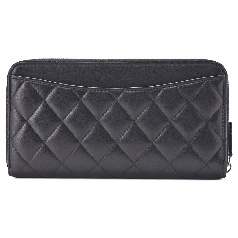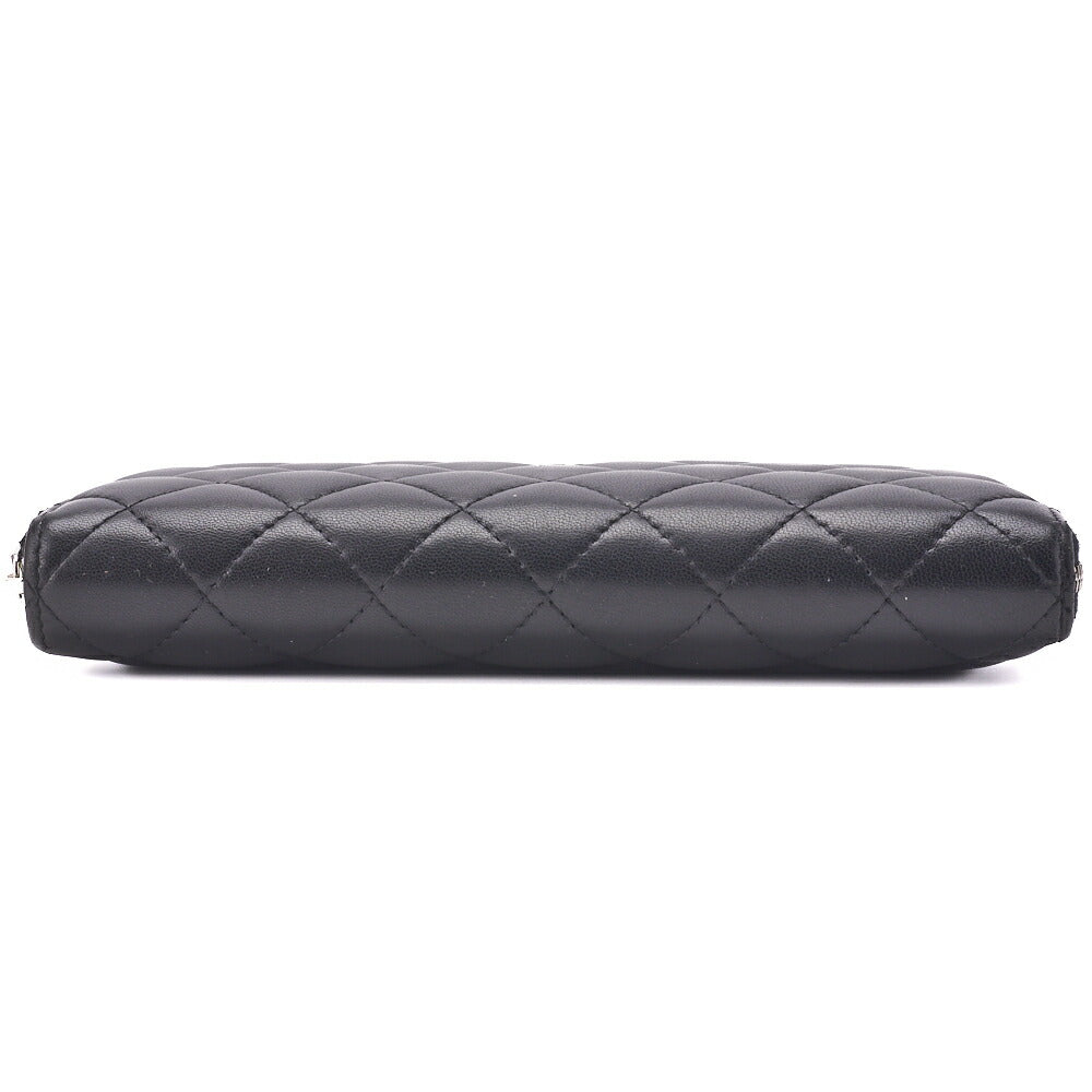 Pre-Owned Runde Lange Geldbörse Matelassé Lammleder Schwarz Silberfarbene Hardware Pre-Owned