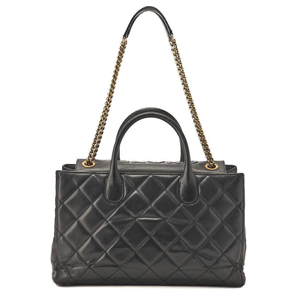 Pre-Owned Schultertasche Matelassé 2WAY Kalbsleder Schwarz Goldfarbene Hardware Pre-Owned