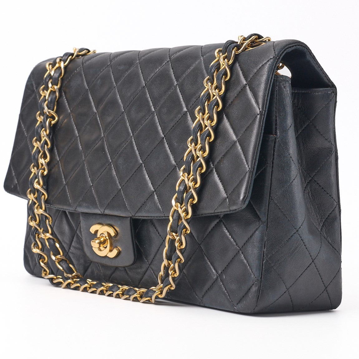 Pre-Owned Schultertasche, Matelassé, Lammleder, Schwarz, Goldfarbene Hardware, Pre-Owned