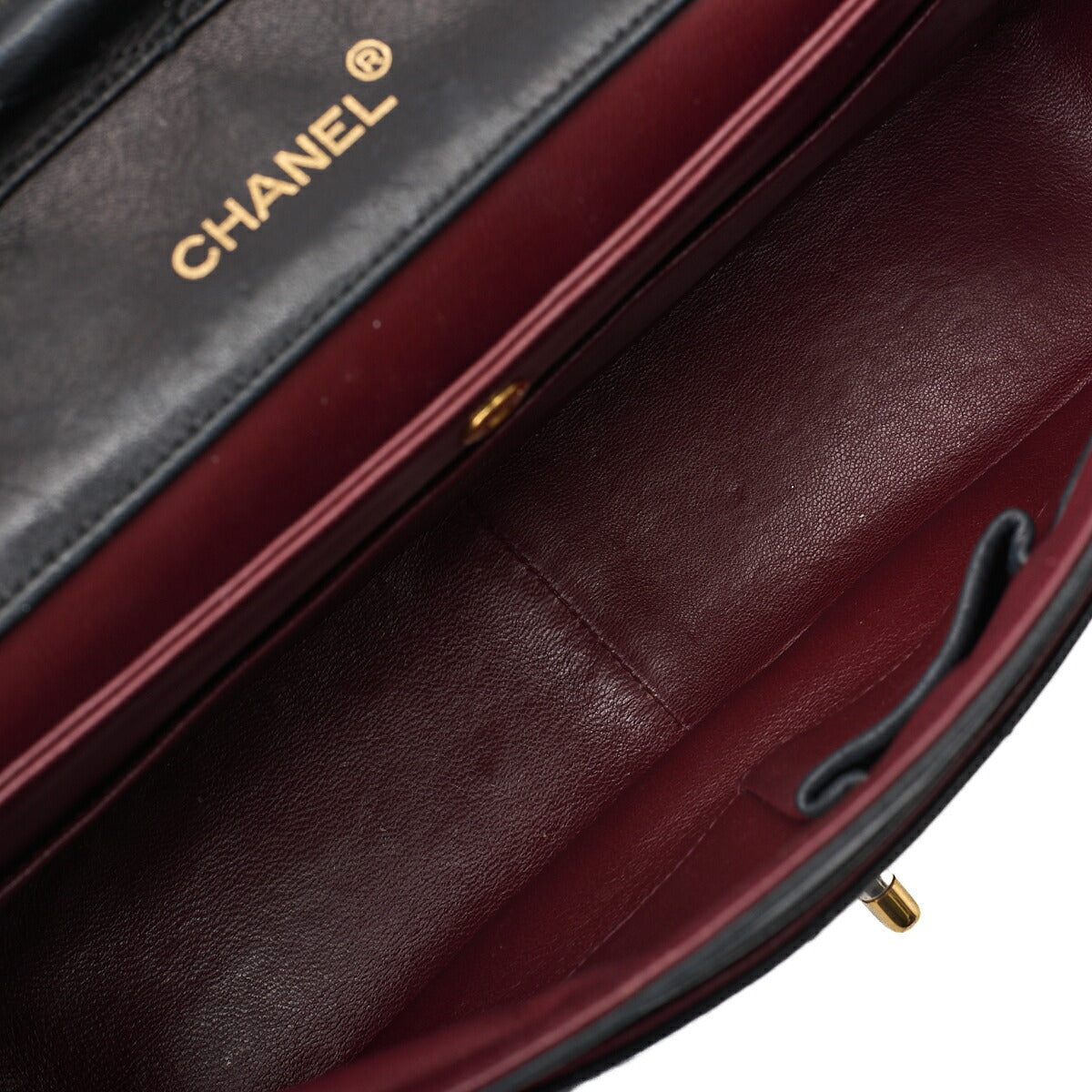 Erweitern Sie Ihre Accessoire-Auswahl mit der CHANEL Matelasse Single Flap Chain Schultertasche aus luxuriösem schwarzem Lammleder, verziert mit eleganten Goldbeschlägen. Dieses exquisite Stück ist nicht nur eine Tasche; es ist ein Statement für Raffinesse und Stil.