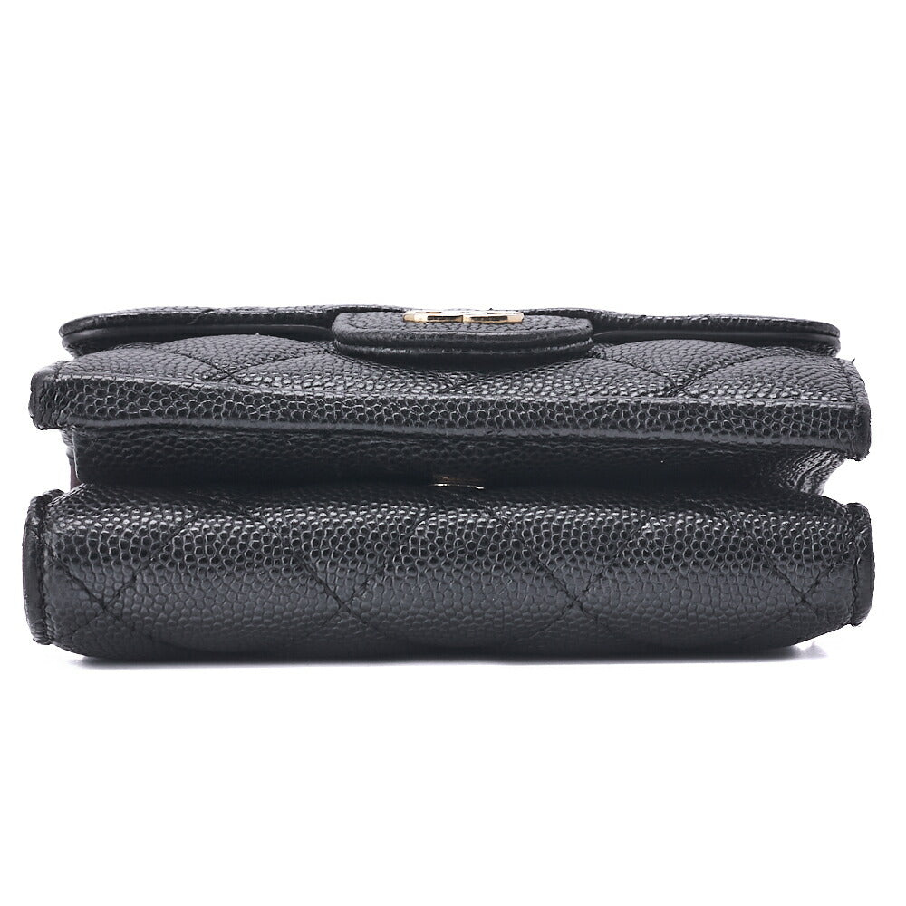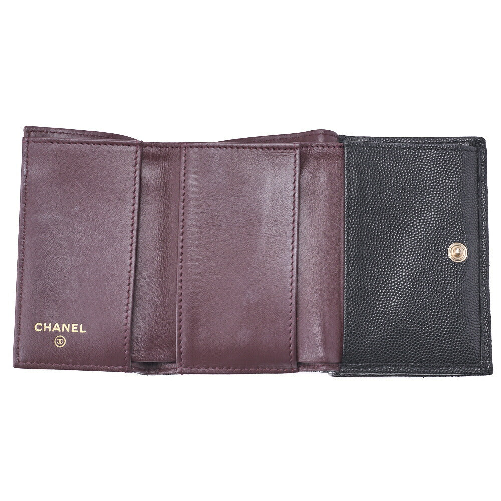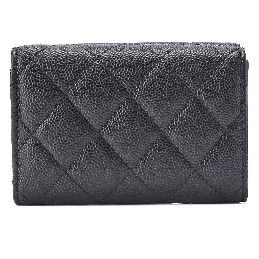 Entdecken Sie die exquisite CHANEL Matelassé Tri-Fold Compact Wallet , gefertigt aus luxuriösem Caviar Skin in zeitlosem Schwarz, verziert mit eleganten Goldbeschlägen. Dieses gebrauchte Meisterwerk ist mehr als nur eine Geldbörse; es ist ein Statement für Raffinesse und Stil.