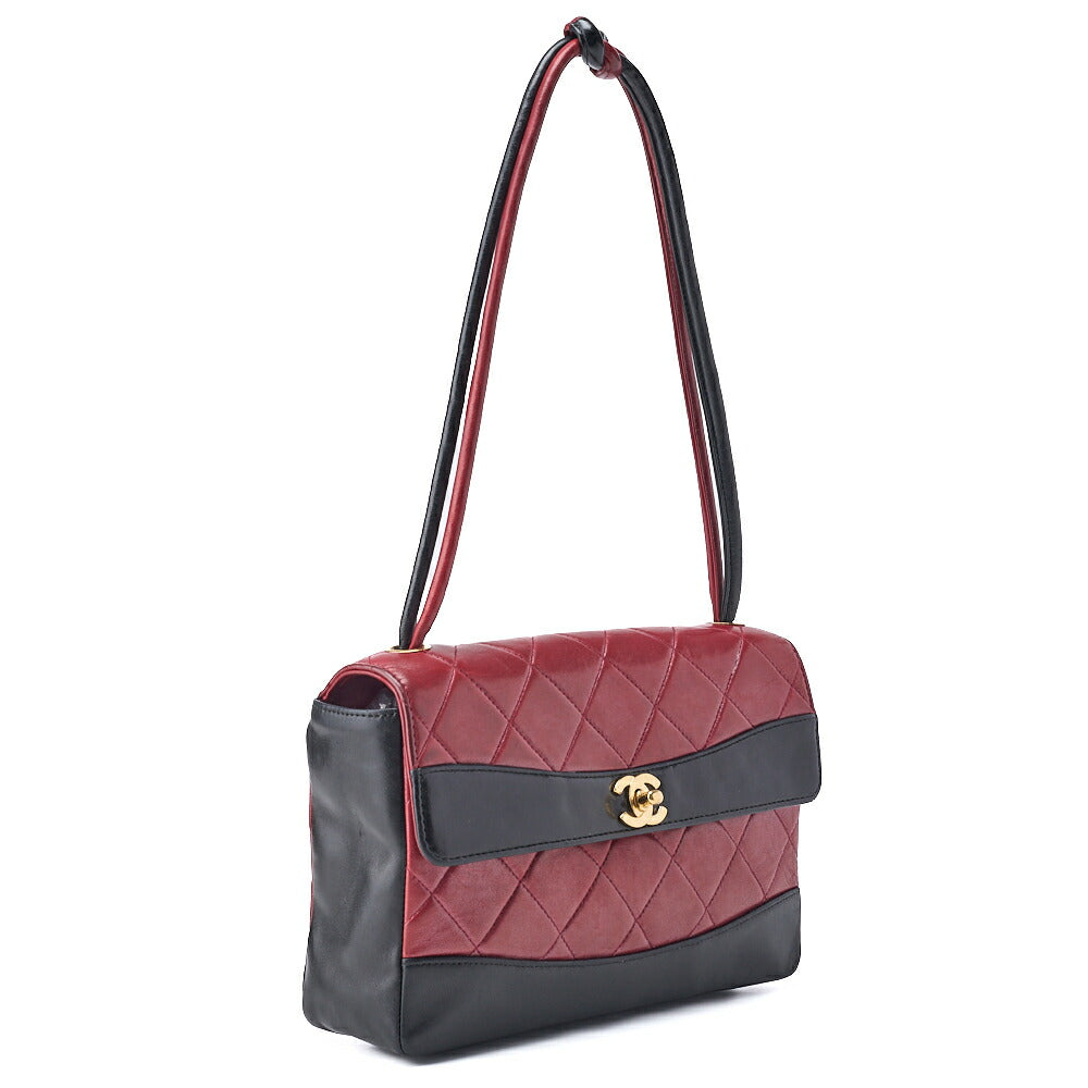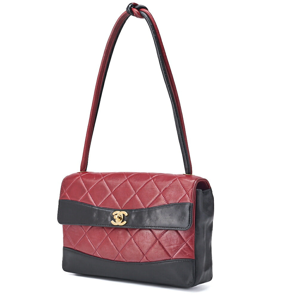 Pre-Owned Schultertasche Matelassé Drehverschluss Lammleder Rot Goldfarbene Hardware Pre-Owned