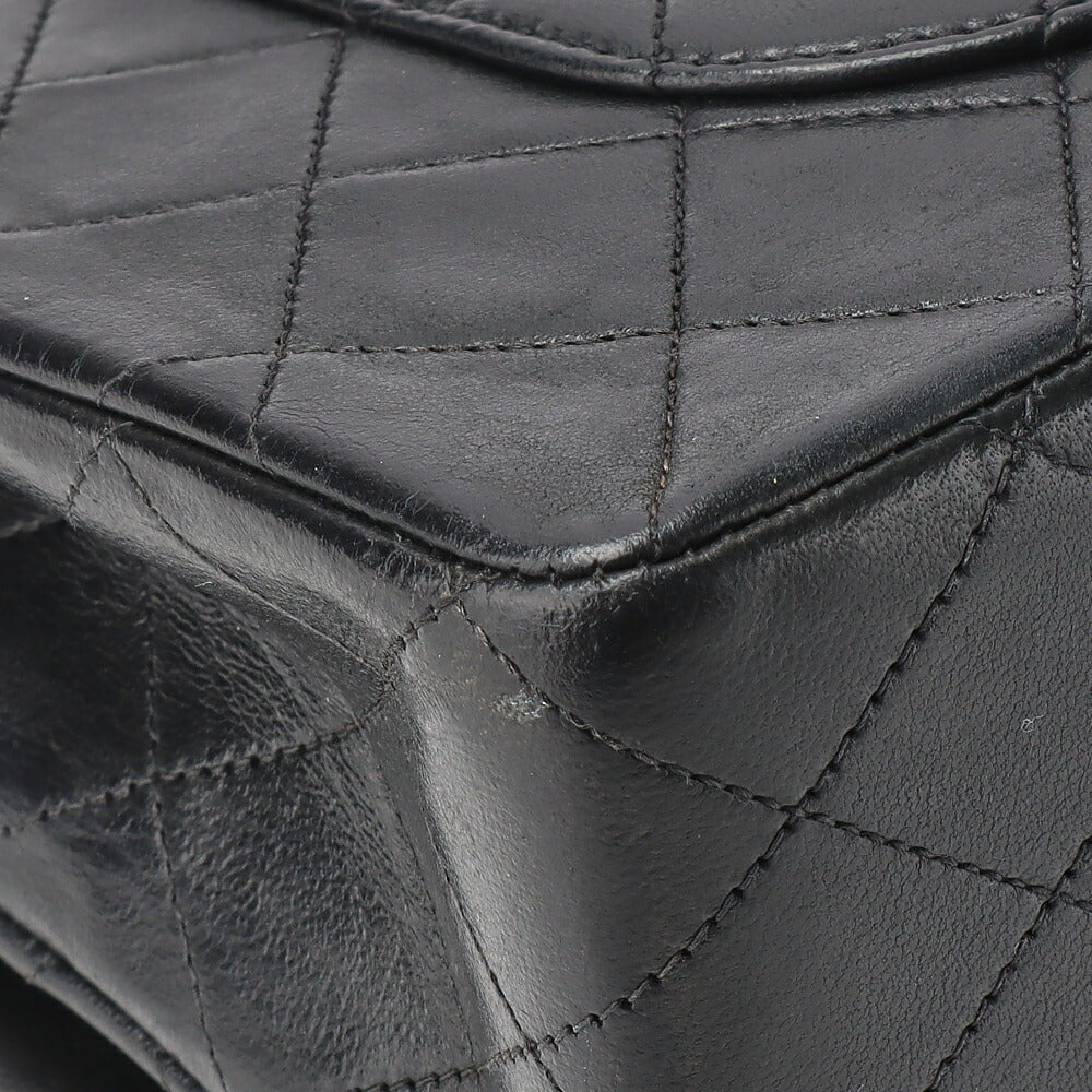 Erweitern Sie Ihre Accessoire-Auswahl mit der exquisiten CHANEL Matelassé Turn Lock Double Flap Chain Shoulder Bag . Diese Mini-Umhängetasche aus luxuriösem Lammleder in zeitlosem Schwarz ist perfekt für die moderne Frau, die High Fashion und zeitlosen Stil schätzt.