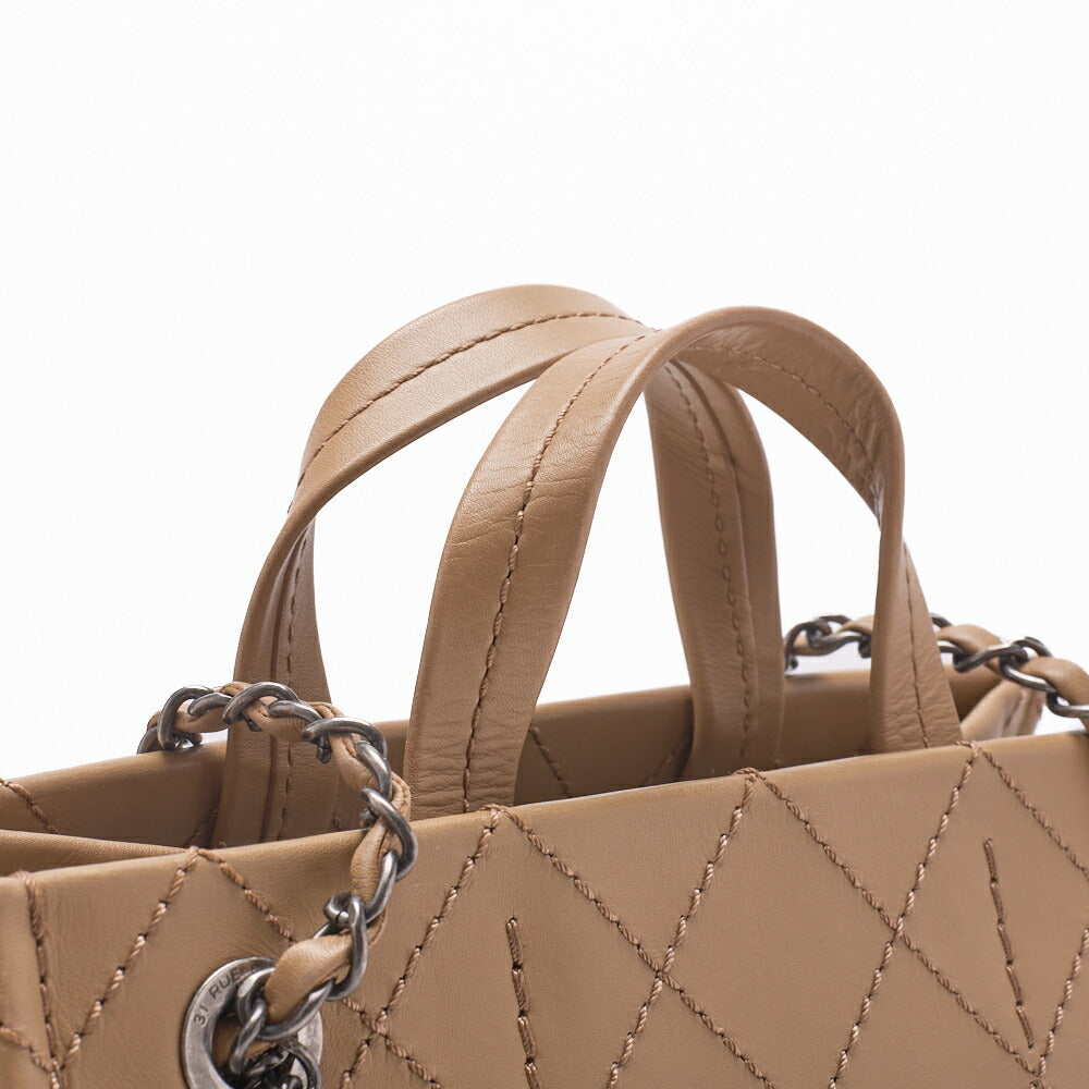 Veredeln Sie Ihren Stil mit der CHANEL Matelasse Wild Stitch Handtasche aus luxuriösem Kalbsleder in Beige mit eleganten Silberbeschlägen. Diese exquisite Umhängetasche vereint Eleganz und Funktionalität und ist ein unverzichtbares Accessoire für jede modebewusste Frau.