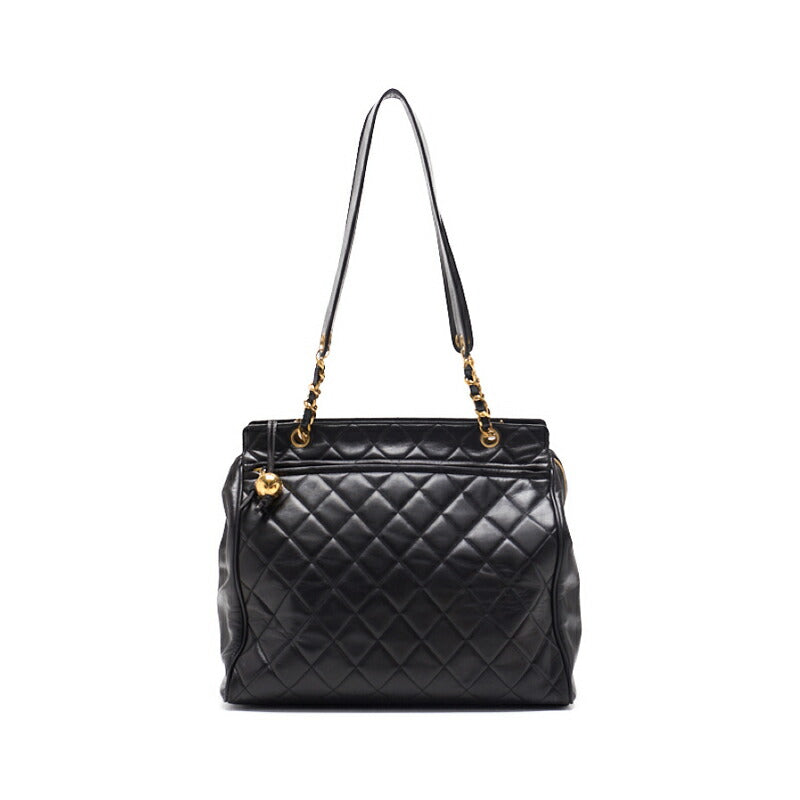 Pre-Owned Schultertasche Matelassé mit Kugelanhänger Doppelkette Lammleder Schwarz Goldfarbene Hardware Pre-Owned