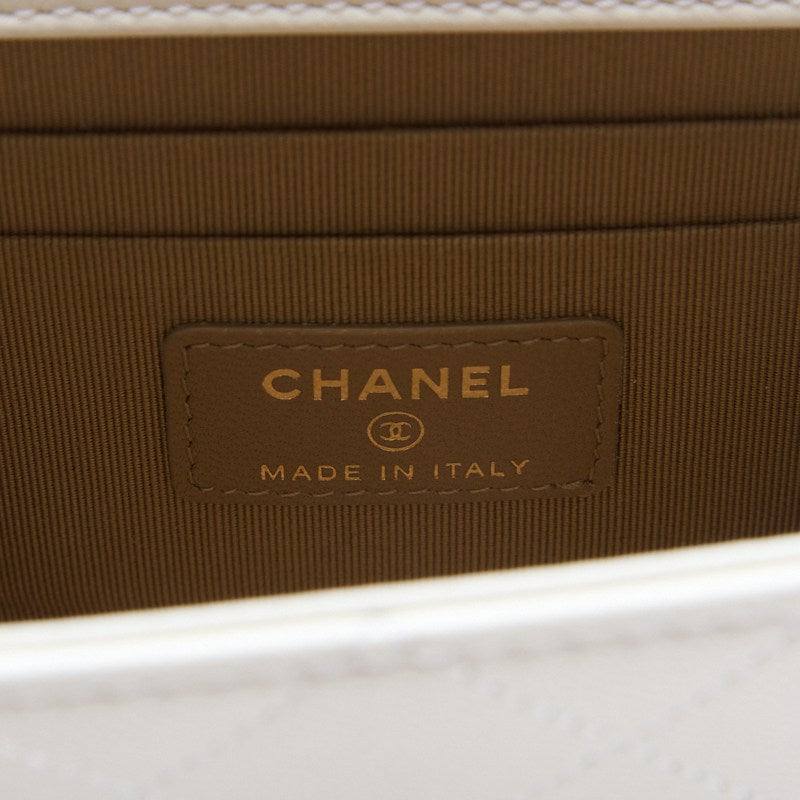 Werten Sie Ihren Stil auf mit der CHANEL Mini Matelassé Pearl Chain Shoulder Lambskin White (Gold Fittings) Schultertasche . Diese exquisite Mini-Schultertasche aus hochwertigem Lammleder ist der Inbegriff von Luxus und Eleganz und somit ein Must-have für jede modebewusste Frau.