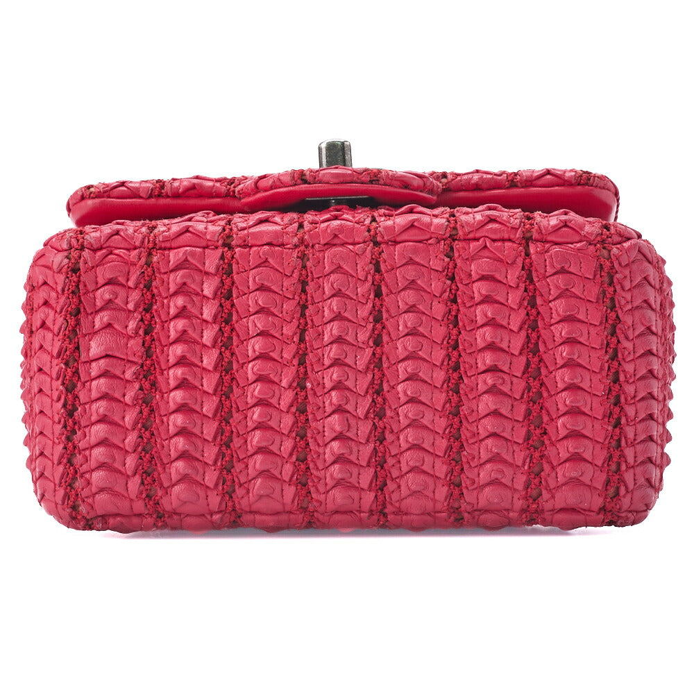 Pre-Owned Mini Matelassé Turn Lock Chain Schultertasche Lammleder Rot Silberfarbene Hardware Pre-Owned