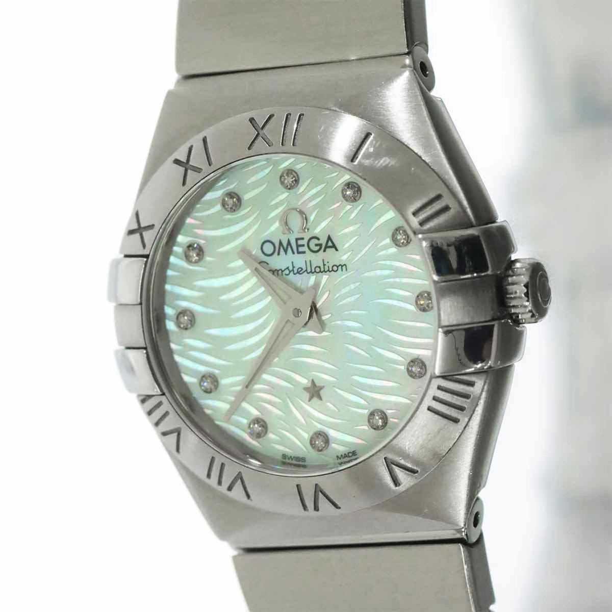 Gebrauchte OMEGA Constellation 123 10 24 60 55 004 Damenuhr 12P Diamant Weißes Muschelquarz