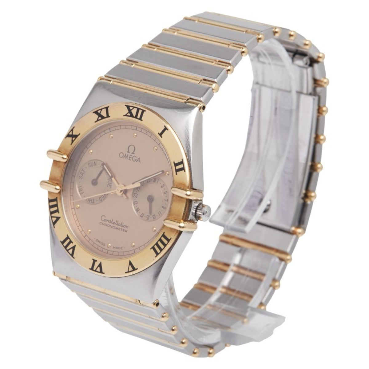 Pre-Owned Omega Constellation Day-Date Quartz Watch with Gold Dial, Stainless Steel, and Yellow Gold, Men's OMEGA