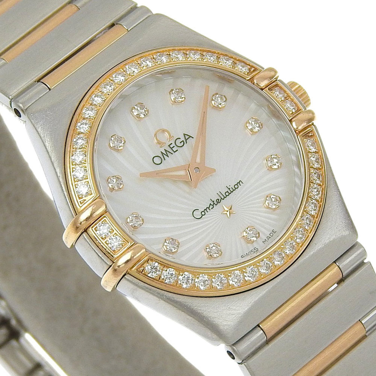 Gebrauchte Omega Constellation Uhr, Kaliber 1456, 111.25.26.60.55.001, Edelstahl, Quarzwerk, analoge Anzeige, weißes Muschelzifferblatt, Damen.