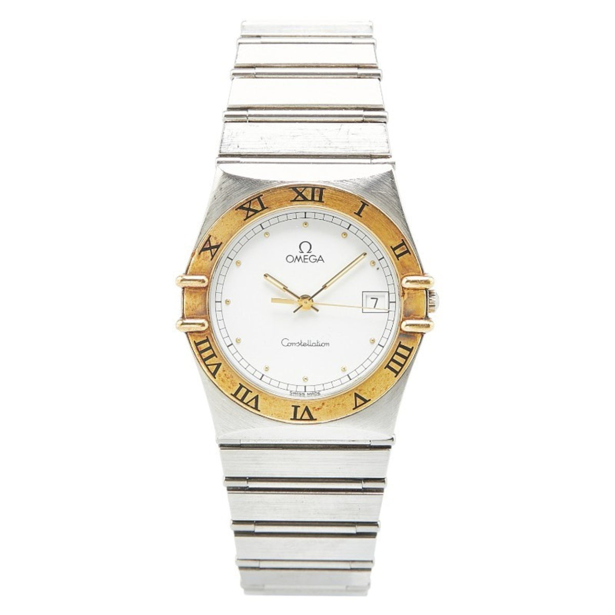 Gebrauchte OMEGA Constellation Uhr Quarz weißes Zifferblatt Edelstahl plattiert Herren