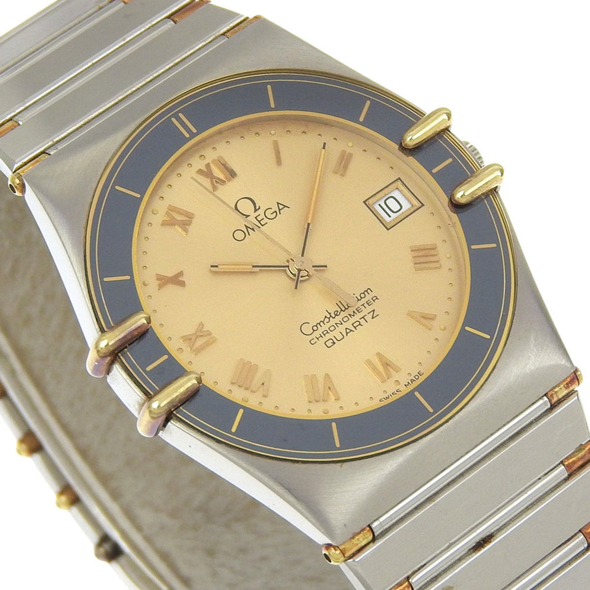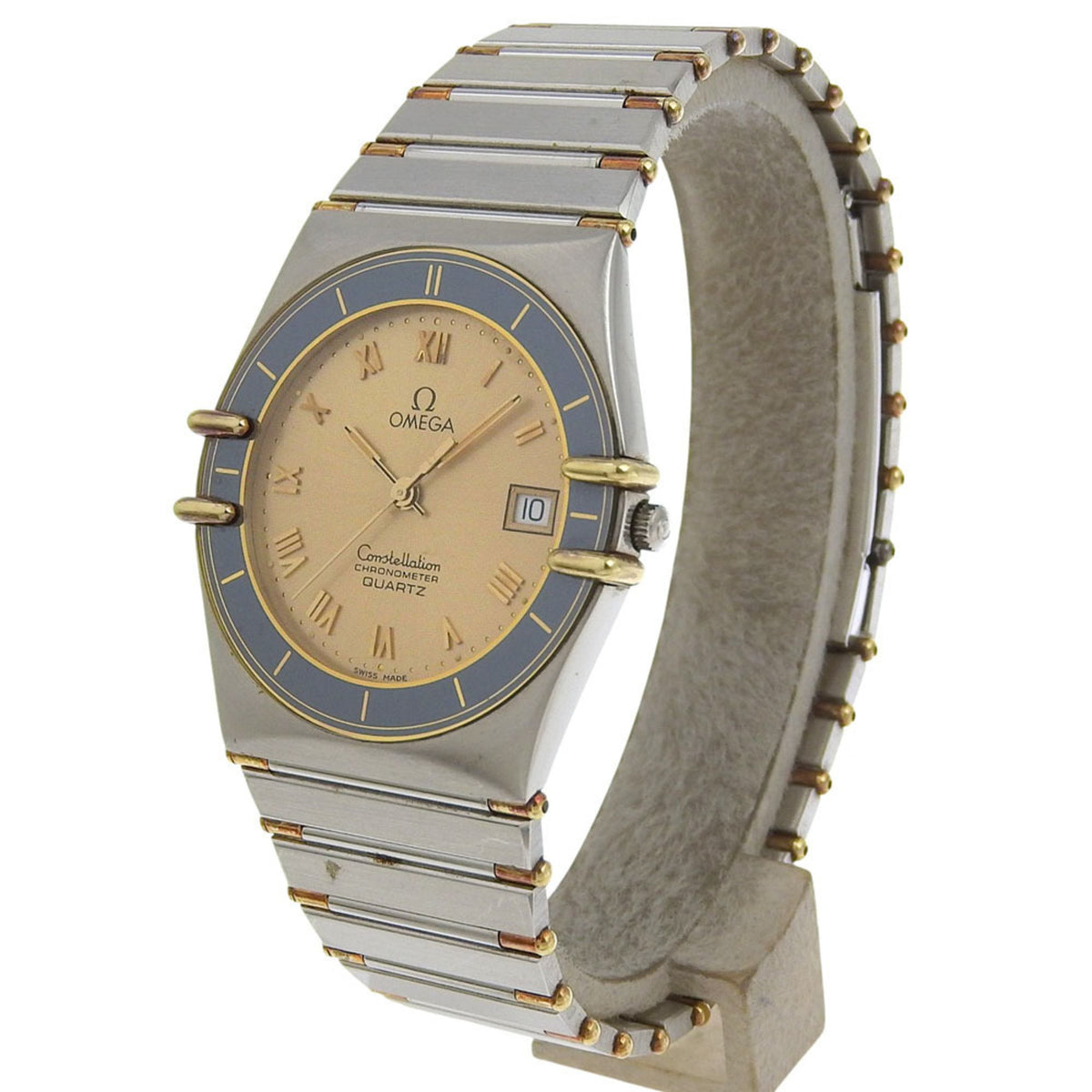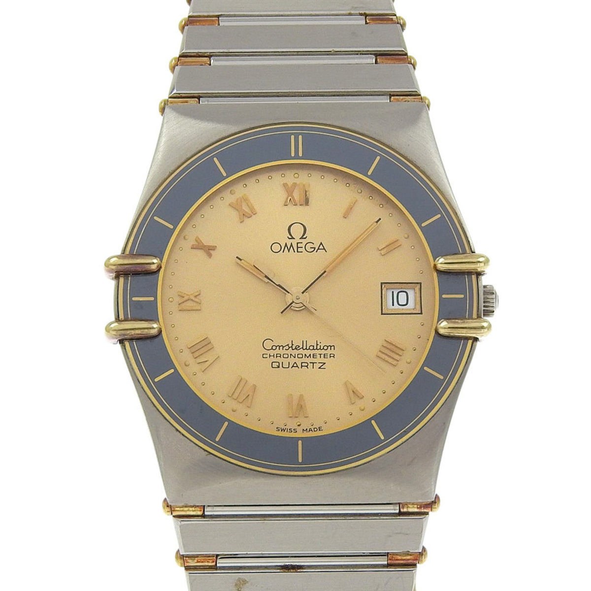 Gebrauchte OMEGA Constellation Damenuhr, Edelstahl, Quarzwerk, Analoganzeige, goldenes Zifferblatt