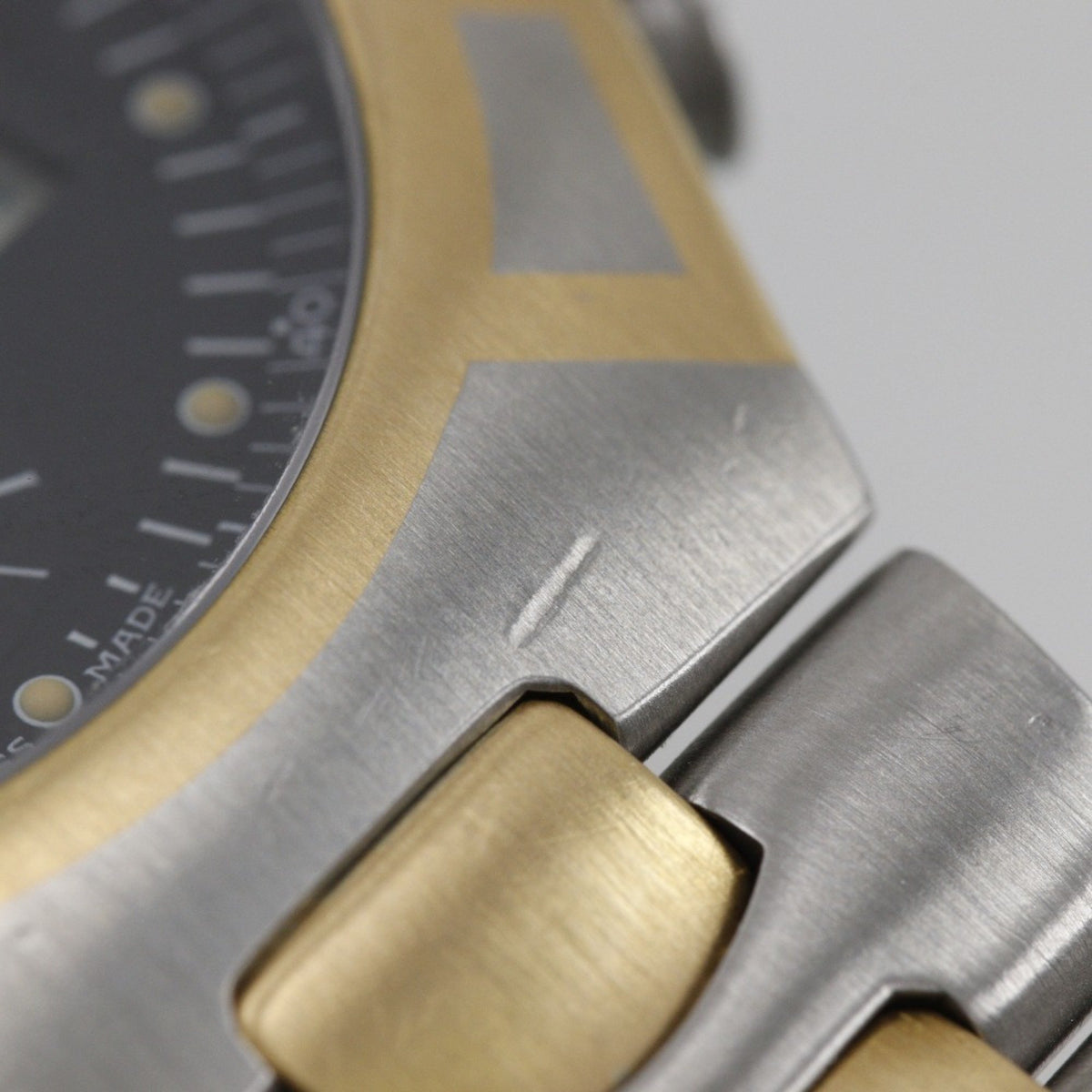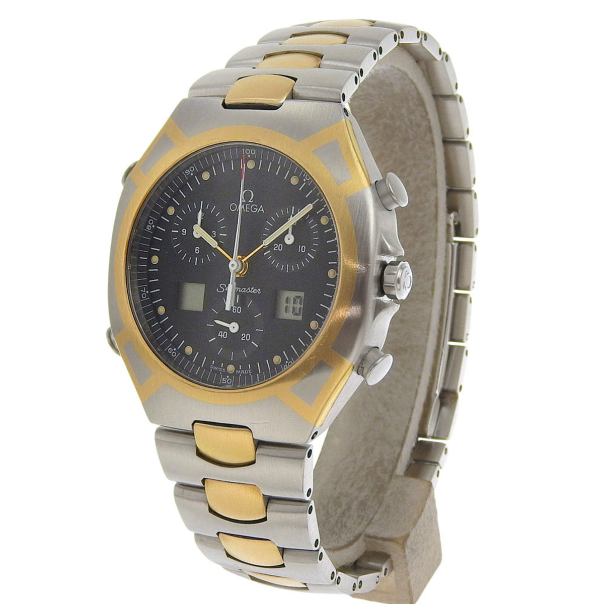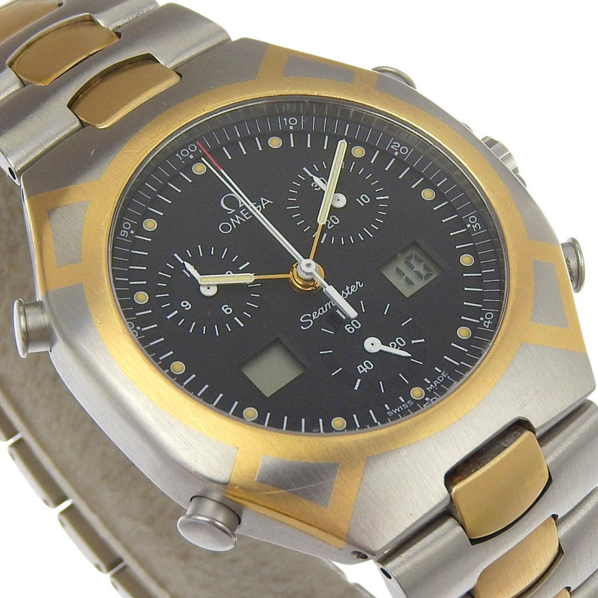 Pre-Owned OMEGA Seamaster Polaris Digital-Analog Watch, Cal. 1670, 2493.50, Titanium and Yellow Gold, 1993, Quartz Chronograph, Black Dial, for Women