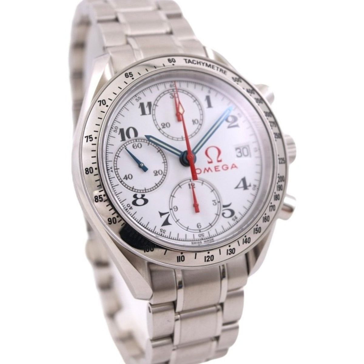 Gebrauchte OMEGA Speedmaster Date 3513.20 Herren-Automatikuhr Olympic Chronograph aus Edelstahl mit weißem Zifferblatt