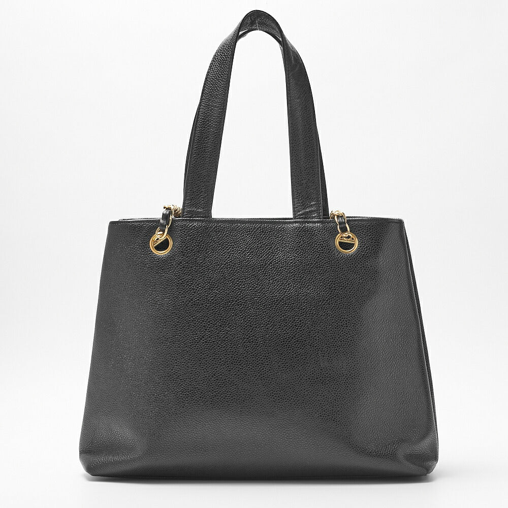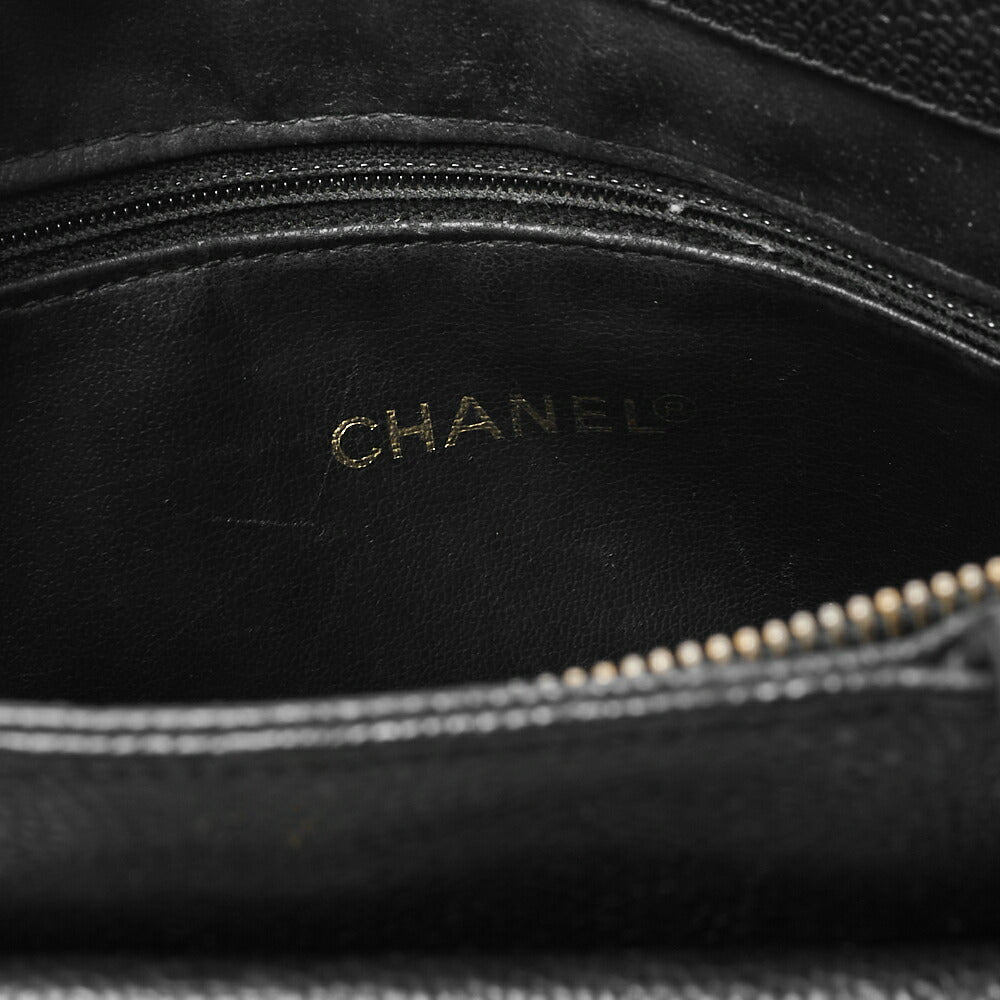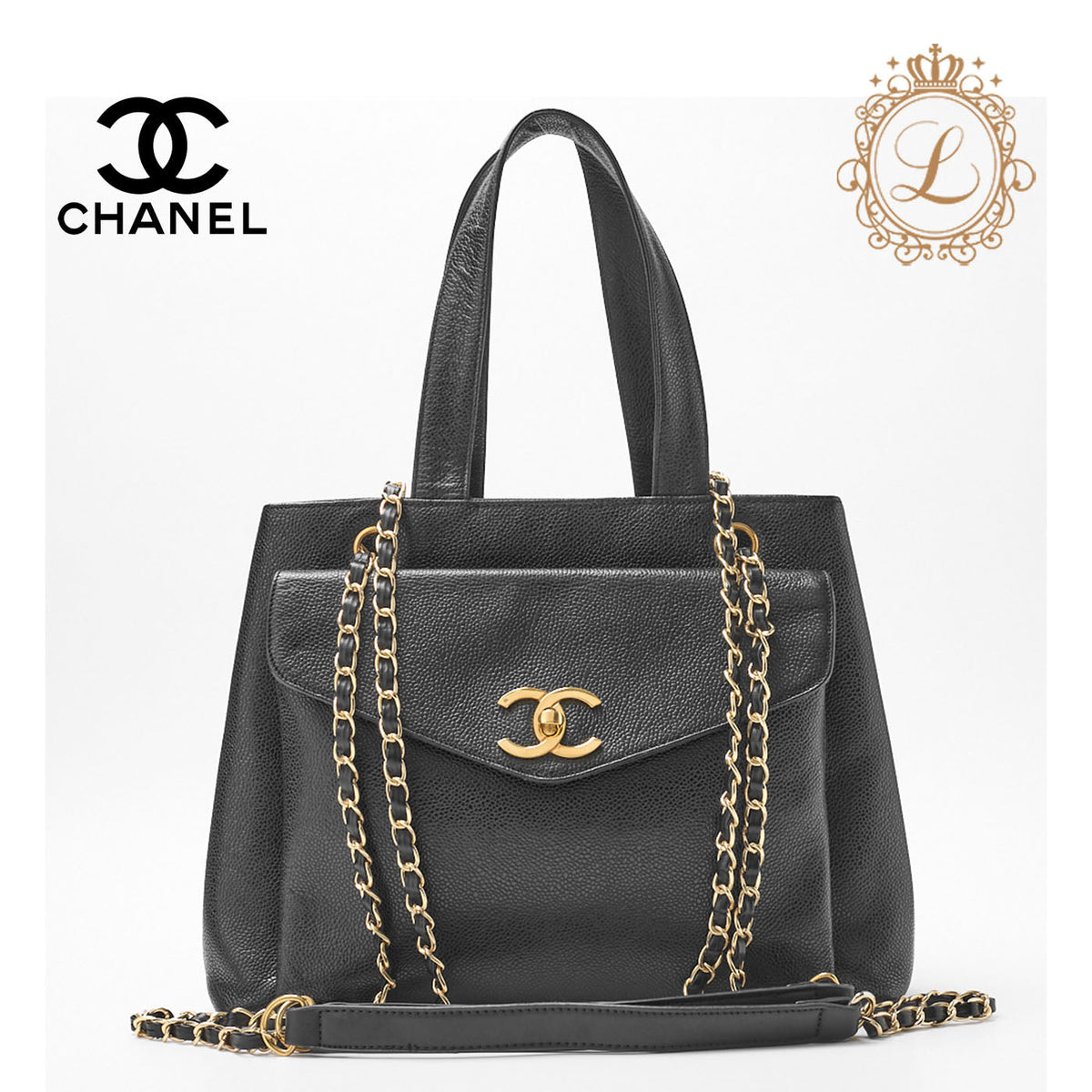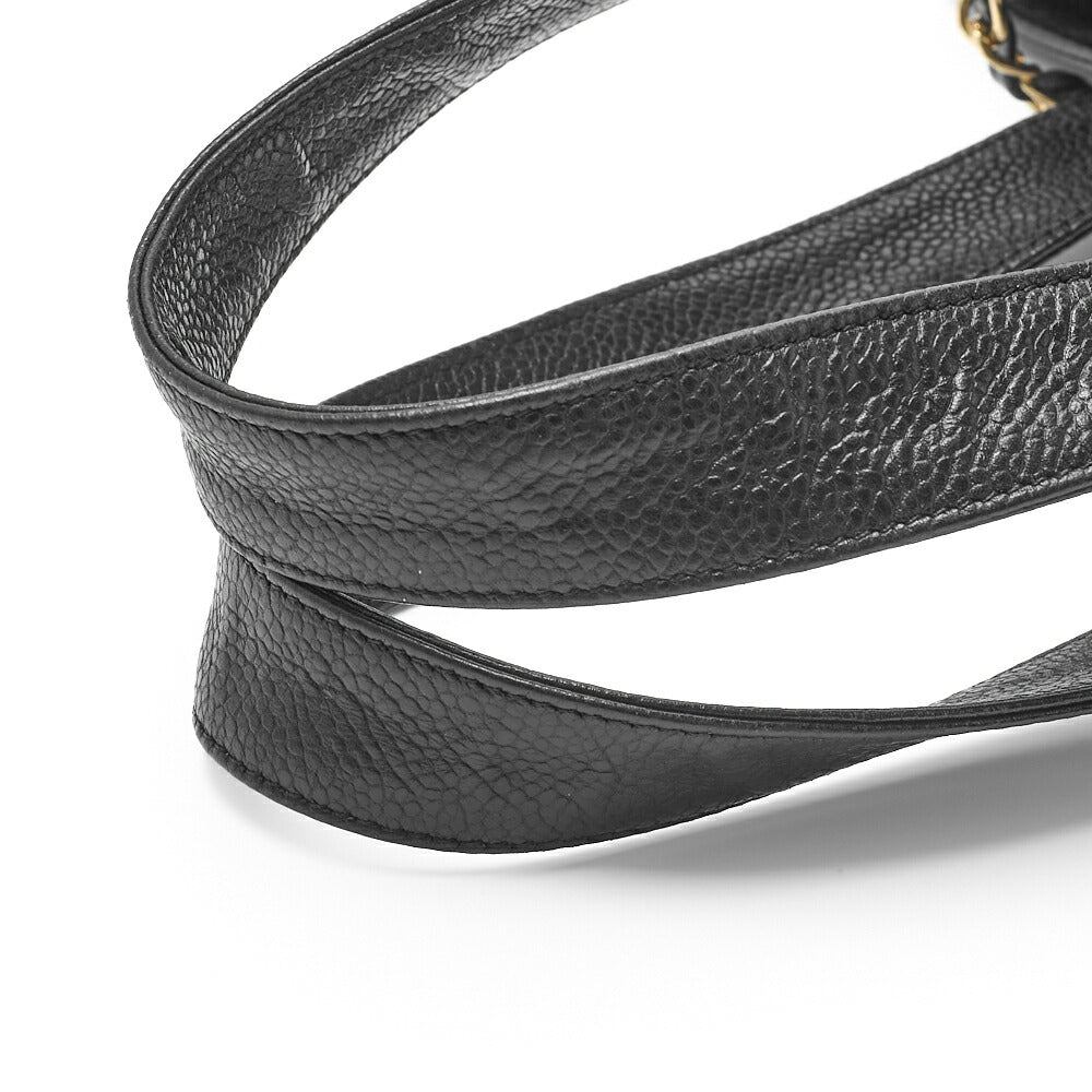 Gebrauchte Umhängetasche 2WAY Außenklappe Drehverschluss Kaviarhaut Schwarz Goldfarbene Hardware Gebraucht