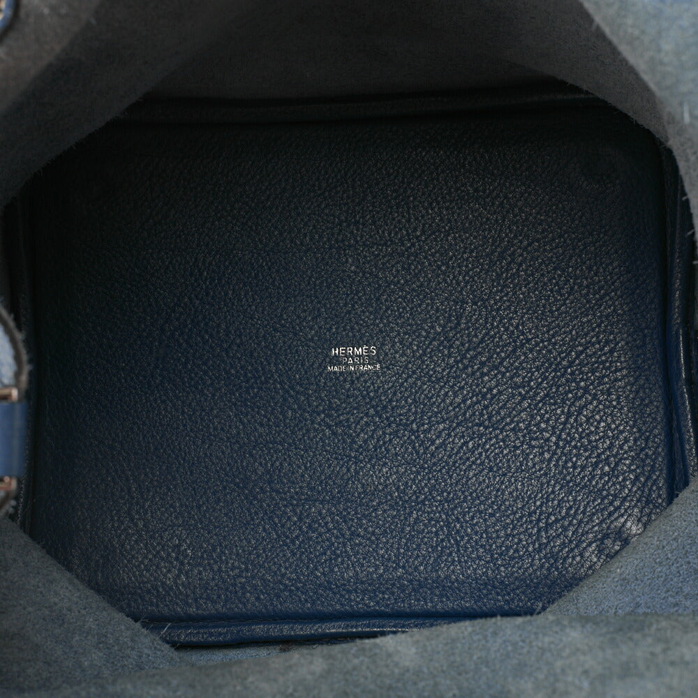 Erweitern Sie Ihre Accessoire-Kollektion mit der HERMES Hermes Picotan MM Handtasche in atemberaubendem Blau mit silbernen Beschlägen. Gefertigt aus luxuriösem Tryon Clemence Leder ist diese Handtasche nicht nur ein Statement, sondern auch ein funktionales Must-have für moderne Frauen.