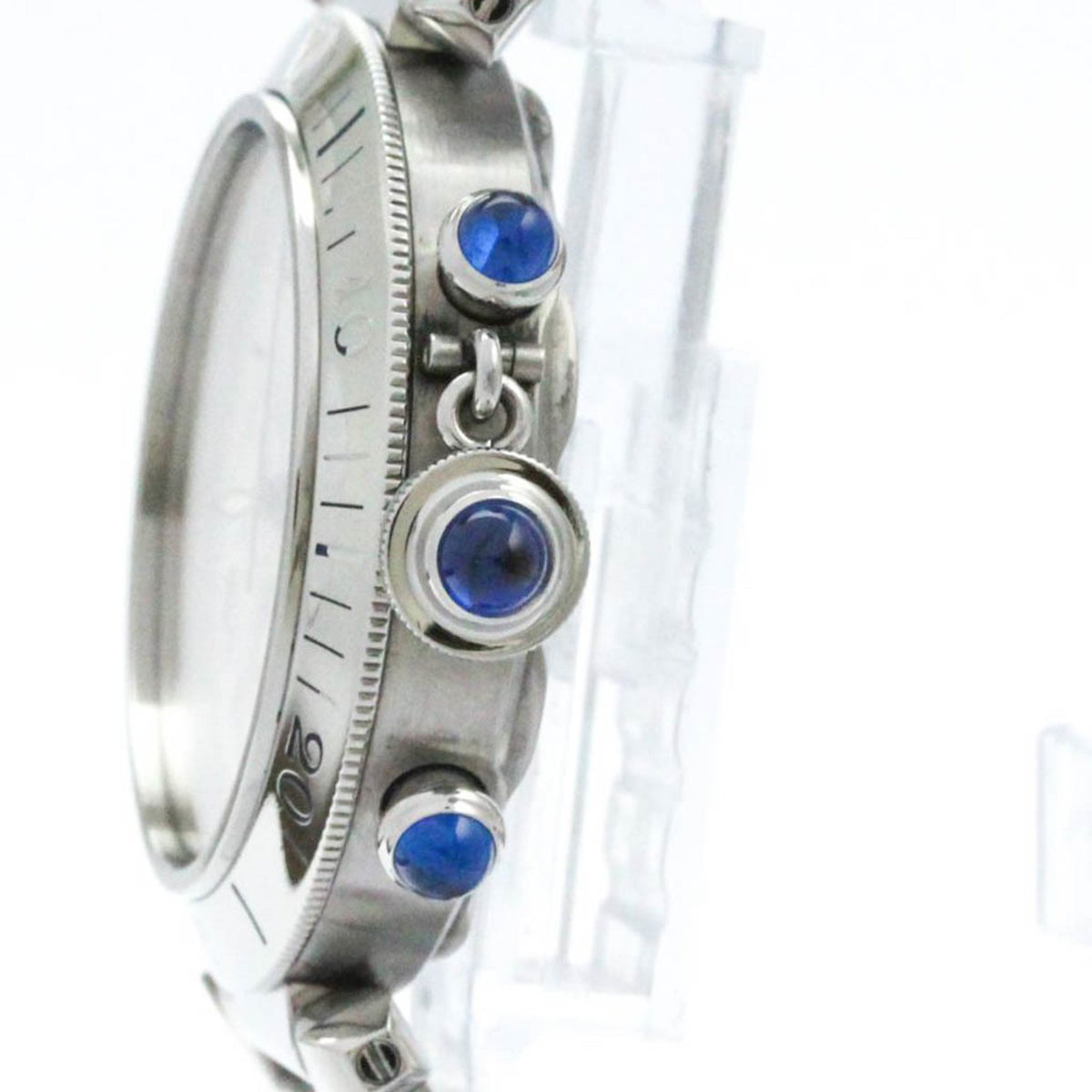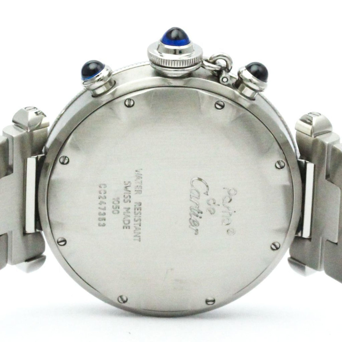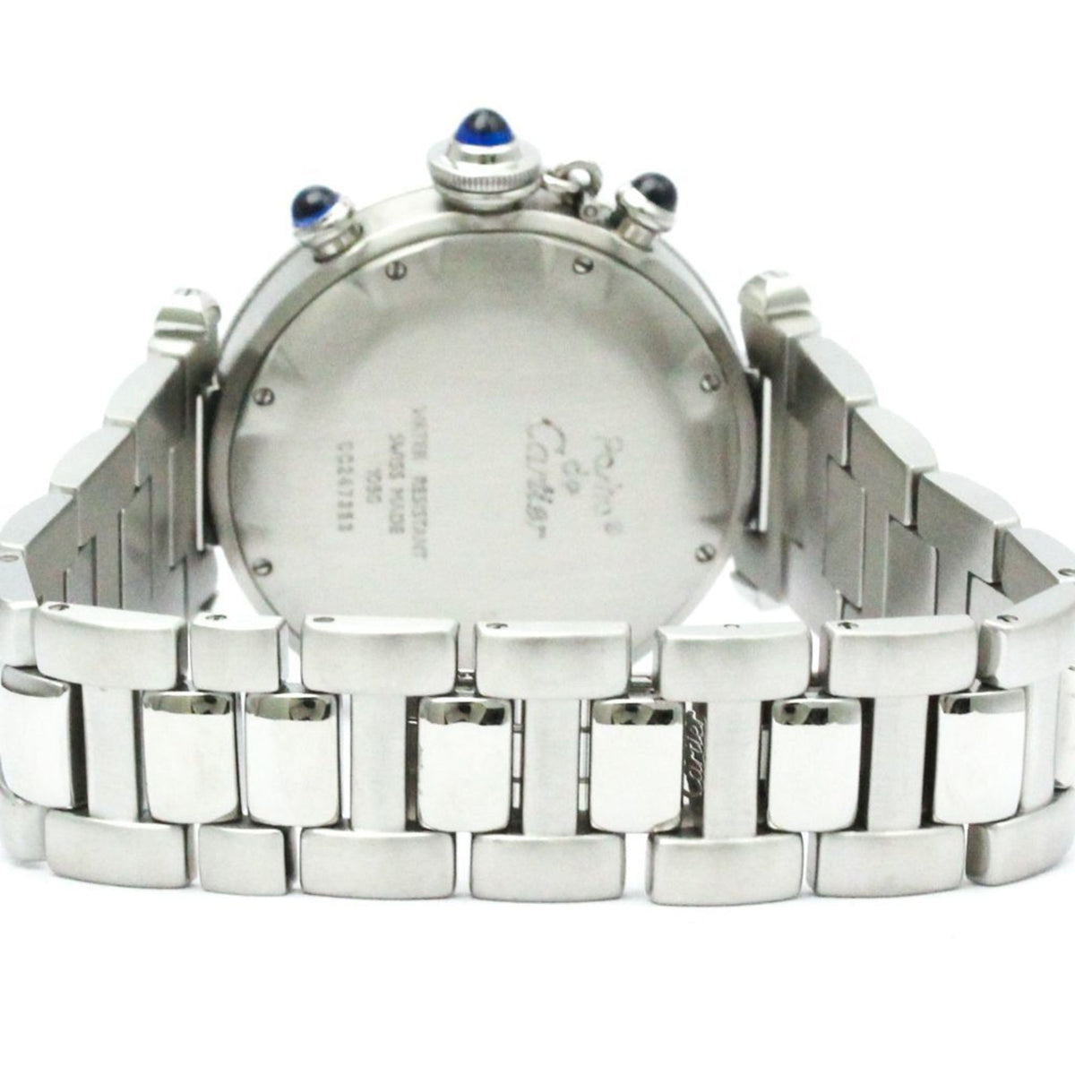 Gebrauchte polierte CARTIER Pasha 38 Chronograph Stahl Quarz Herrenuhr W31018H3 BF574125