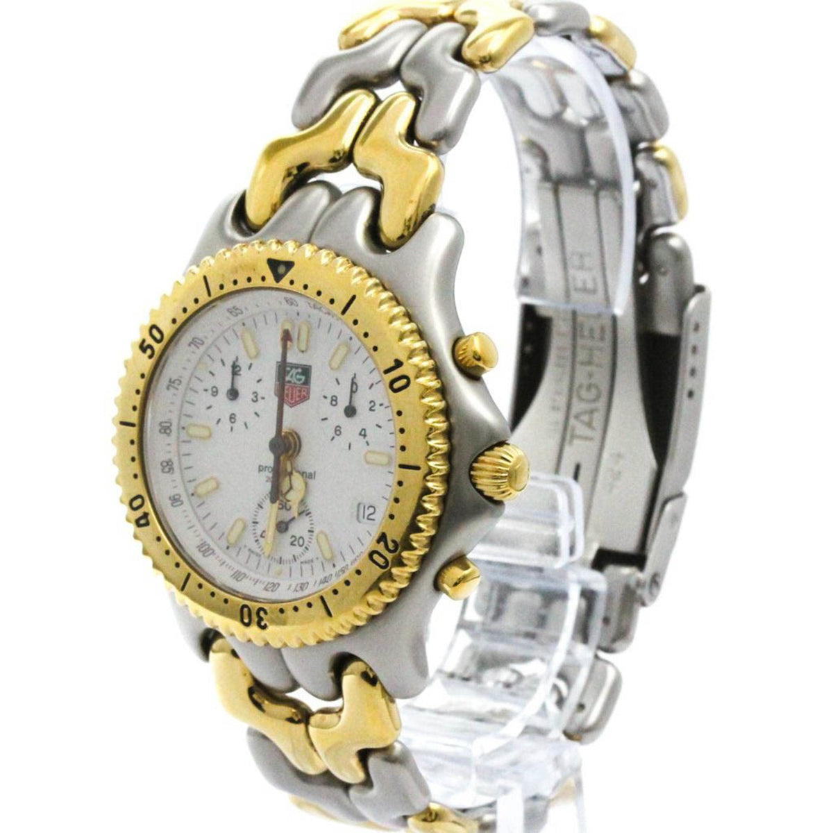 Gebrauchte polierte TAG HEUER Sel Chronograph Herrenuhr aus vergoldetem Stahl S35.006 BF580415