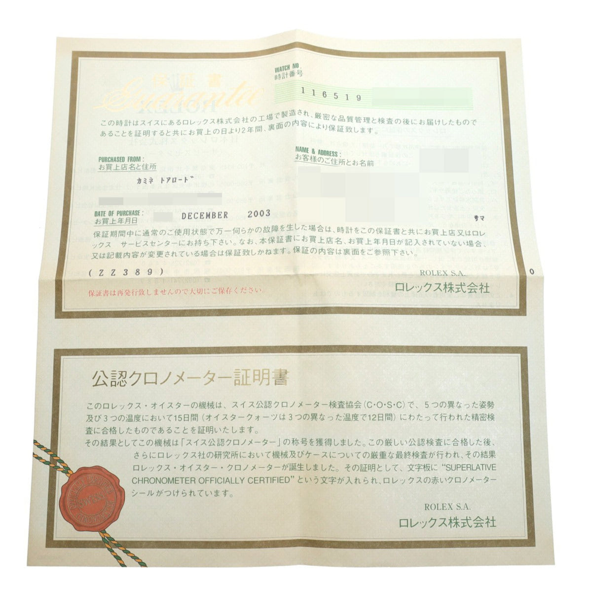 Gebrauchte Rolex Cosmograph Daytona 116519G Y Seriennummer (hergestellt um 2002) Schwarz/Diamant Herrenuhr Automatik