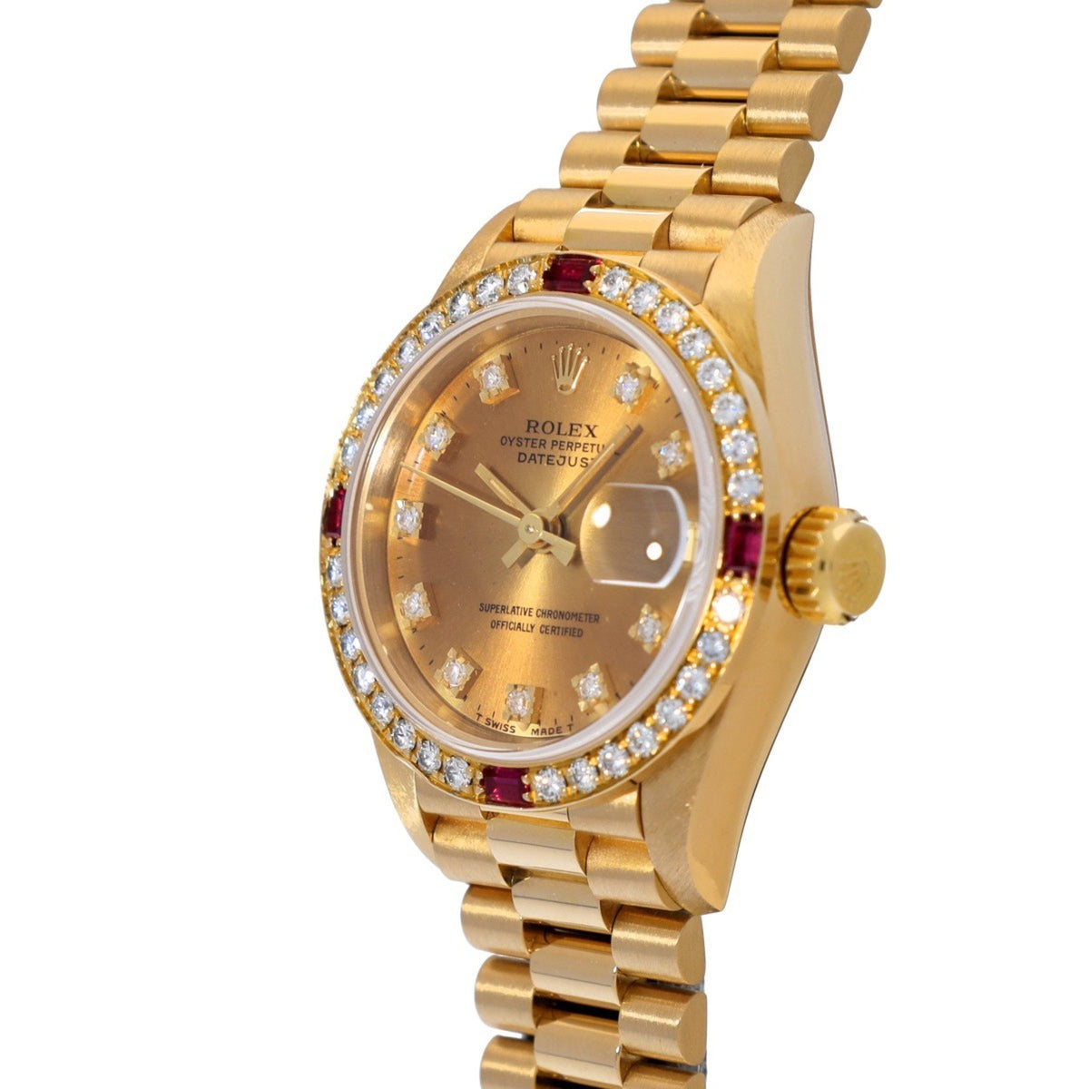 Gebrauchte Rolex Datejust, Zifferblattverfärbung, 69068G, E-Serie (Herstellung ca. 1991), Champagner/Diamant, Damenuhr, Automatik