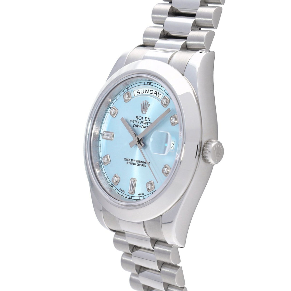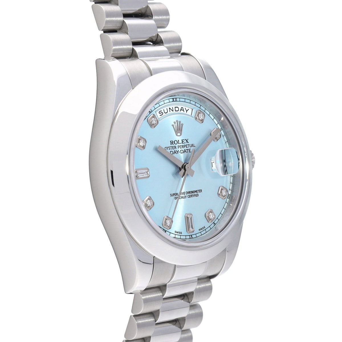 Gebrauchte Rolex Day-Date II 218206, zufällige Seriennummer, Eisblau/Diamant, Herrenuhr, Automatik