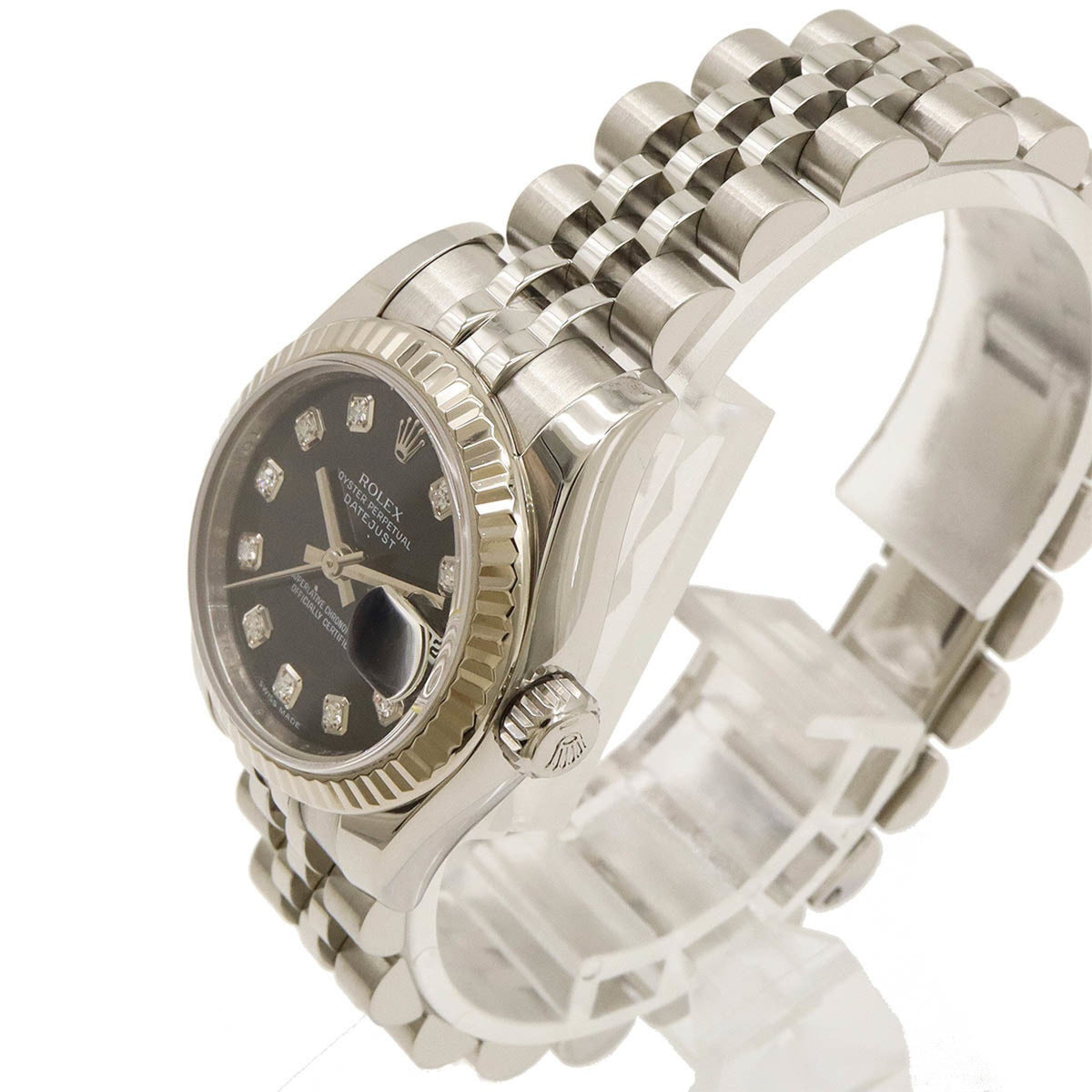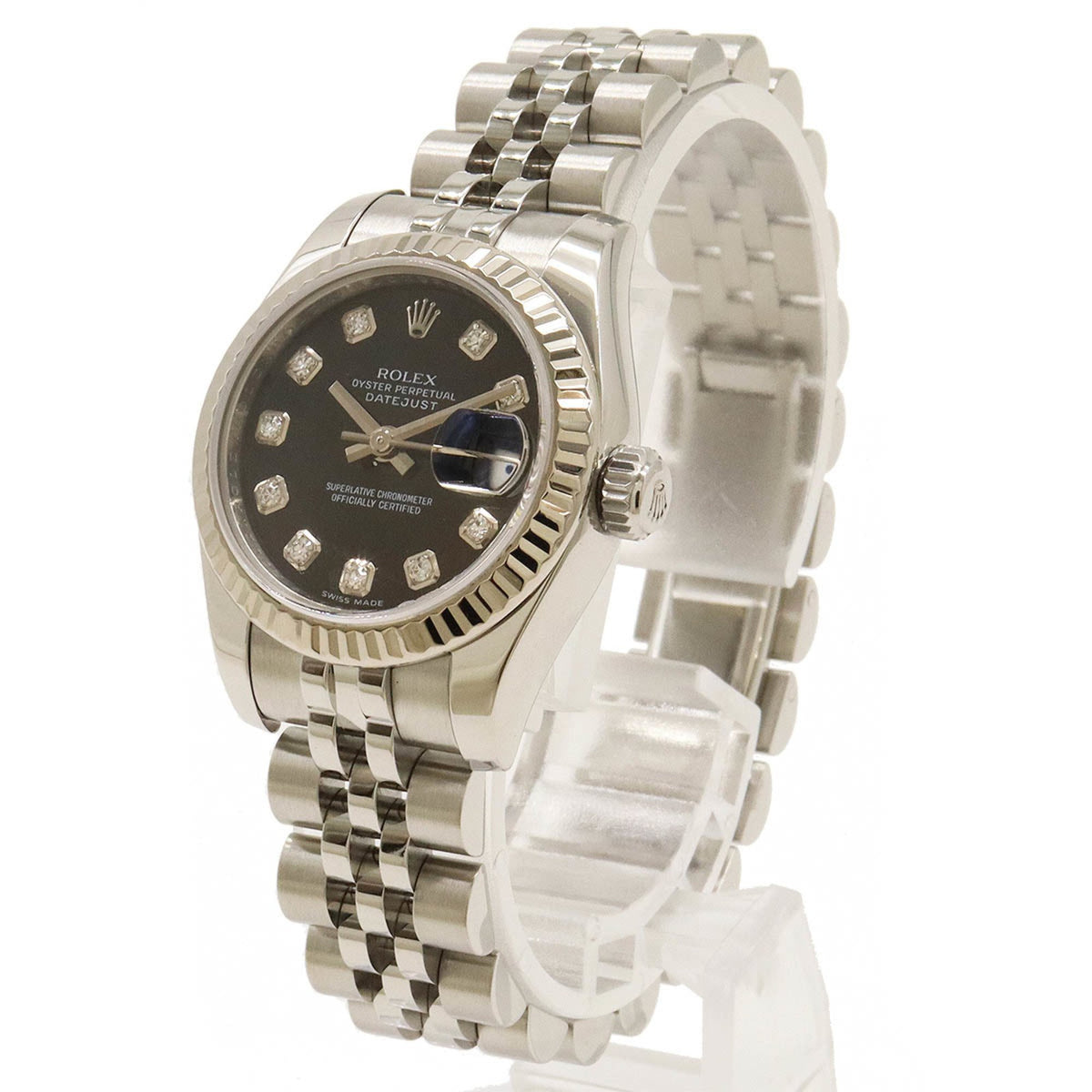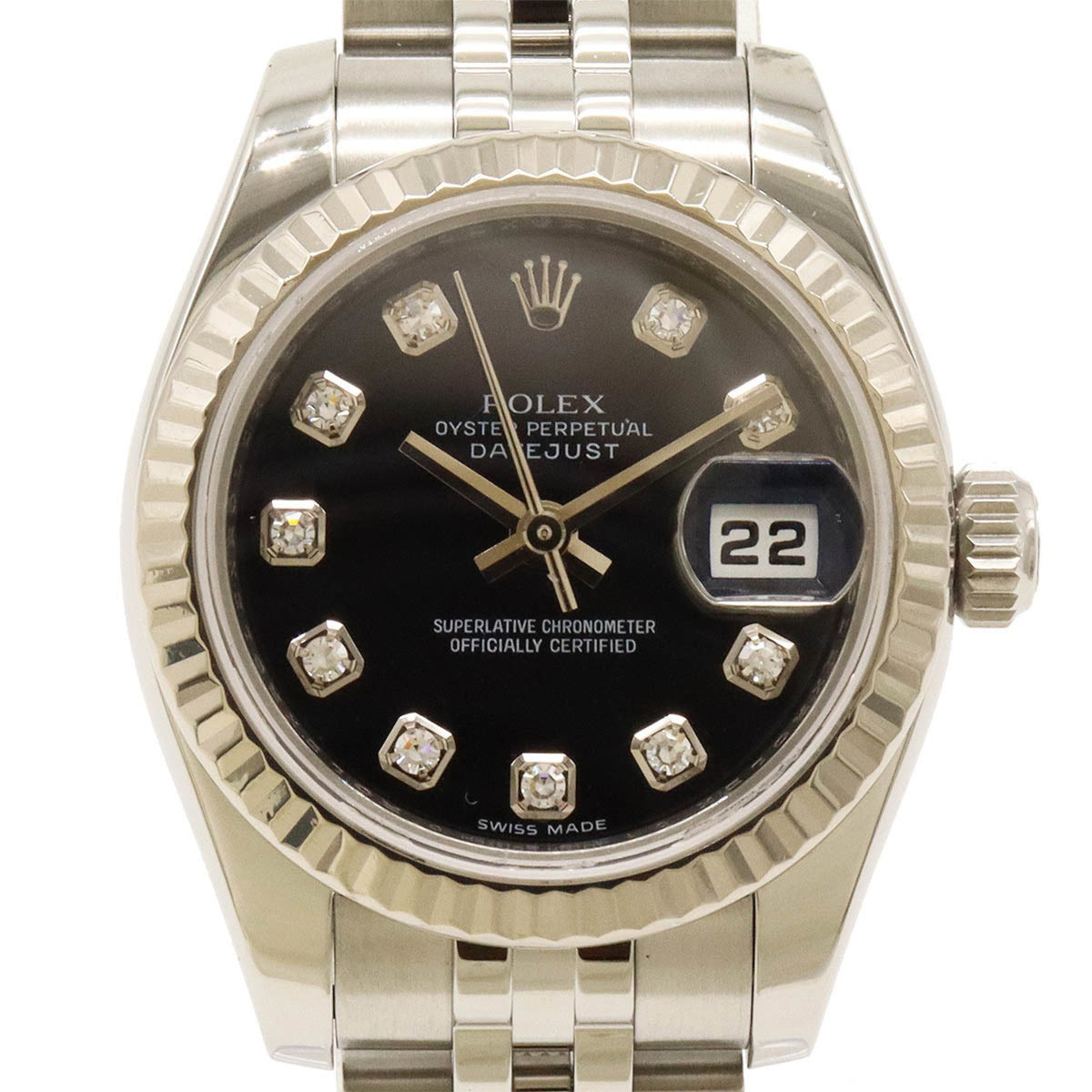 Gebrauchte ROLEX Rolex Datejust Roulette Zufallsproduktnummer Schwarzes Zifferblatt K18WG SS 10P Diamant Damen Automatikuhr 179174G