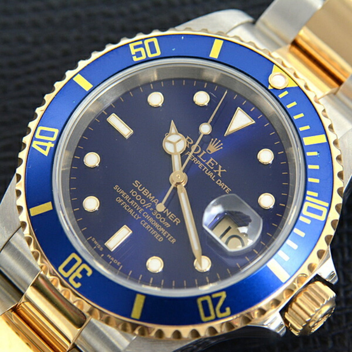 Gebrauchte Rolex-Uhr für Herren, Submariner, blaues Zifferblatt, Sub-Automatik, D-Serie, Edelstahl, Gold, ROLEX 16613 SS x 750YG