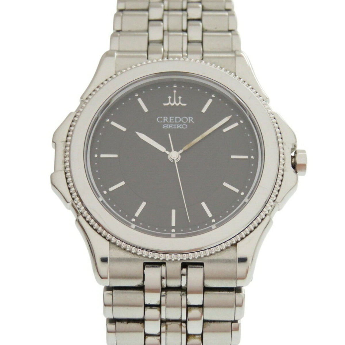 Gebrauchte Seiko Credor Pacific GCAR007 8J81-6A20 SS 18K Weißgold Schwarze Quarz-Armbanduhr Silbernes Zifferblatt 0040SEIKO