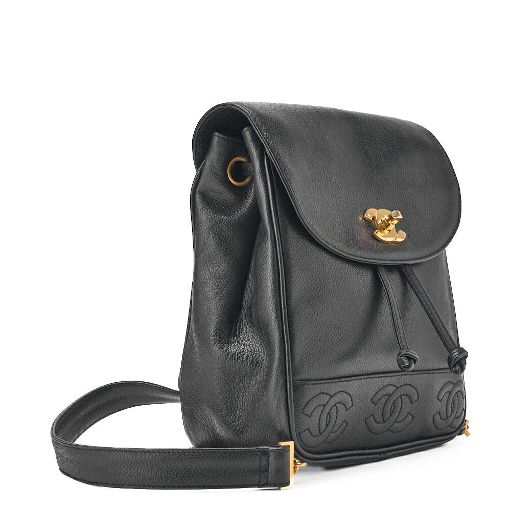 Pre-Owned Shoulder Bag Backpack Lambskin Triple Coco Turnlock Black Gold-Tone Hardware, Pre-Owned