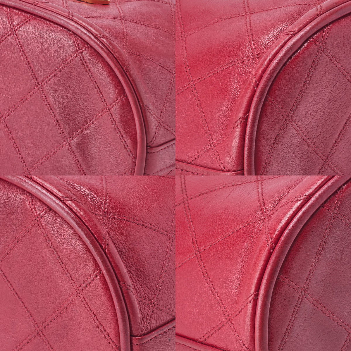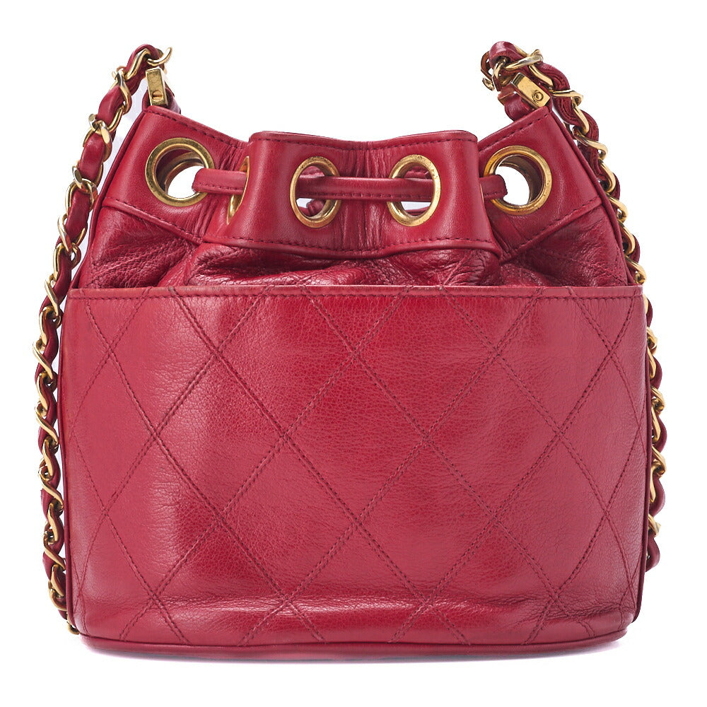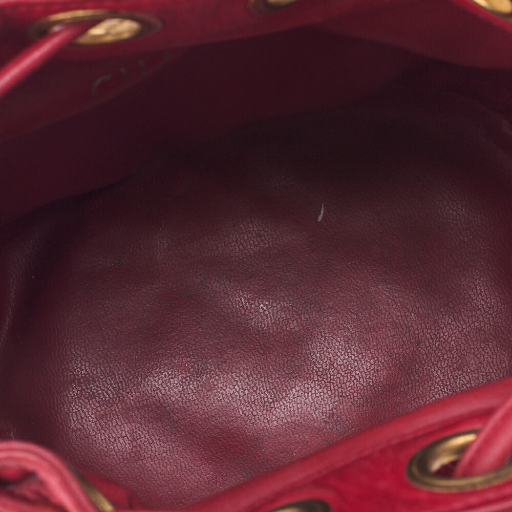 Gebrauchte Umhängetasche, Bicolore Kordelzug, Lammleder, Rot, Goldfarbene Hardware, Gebraucht