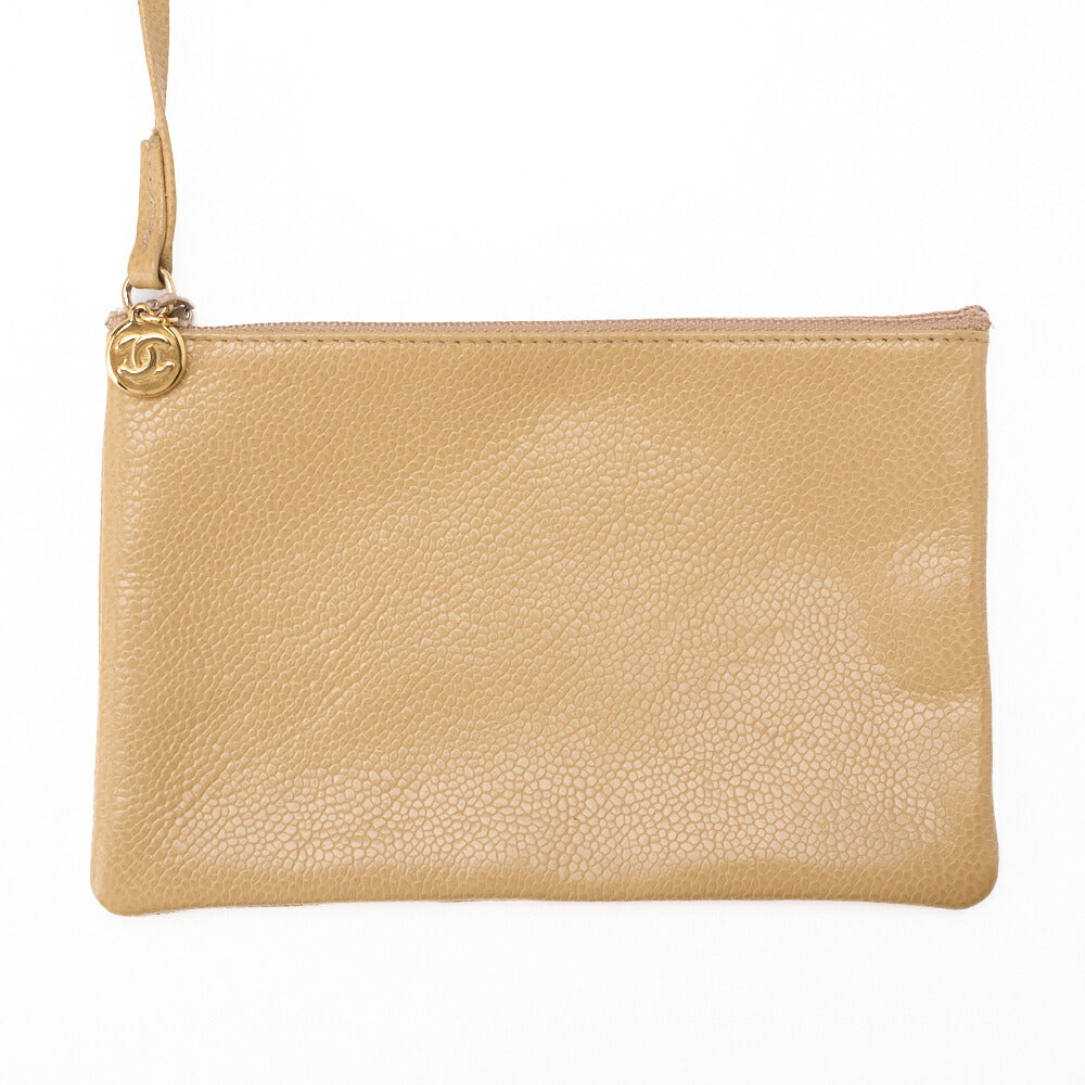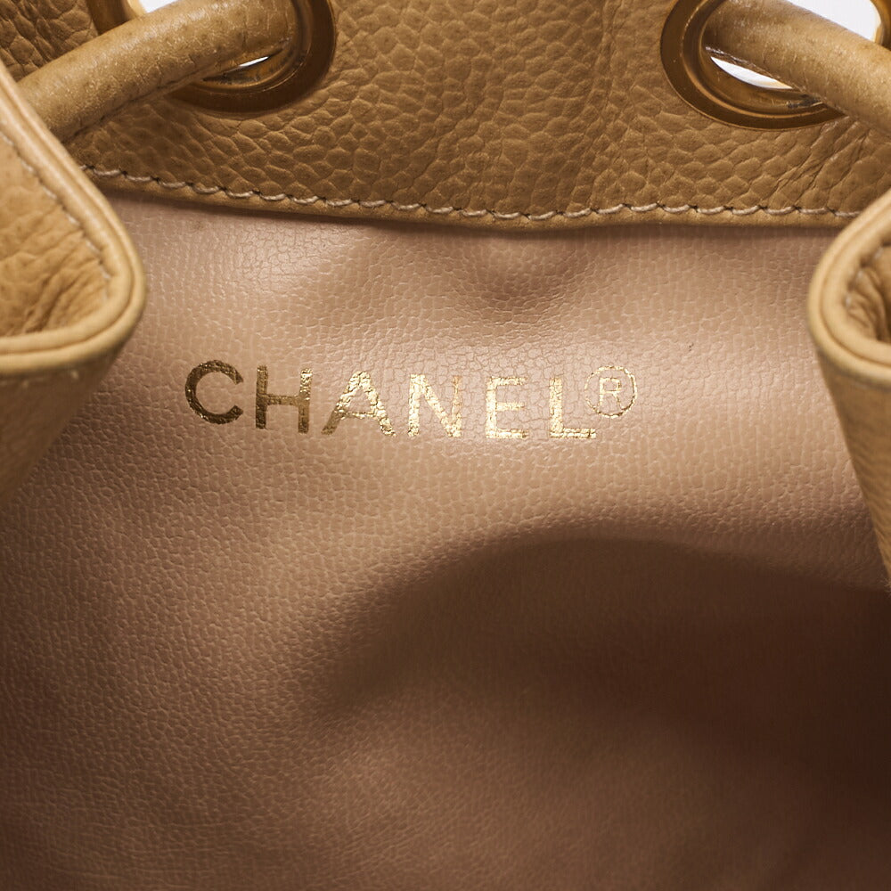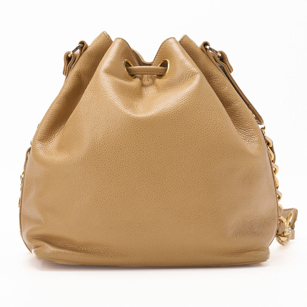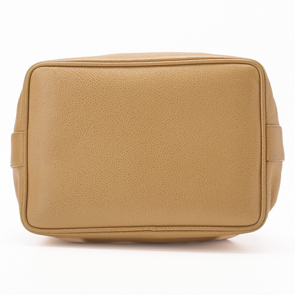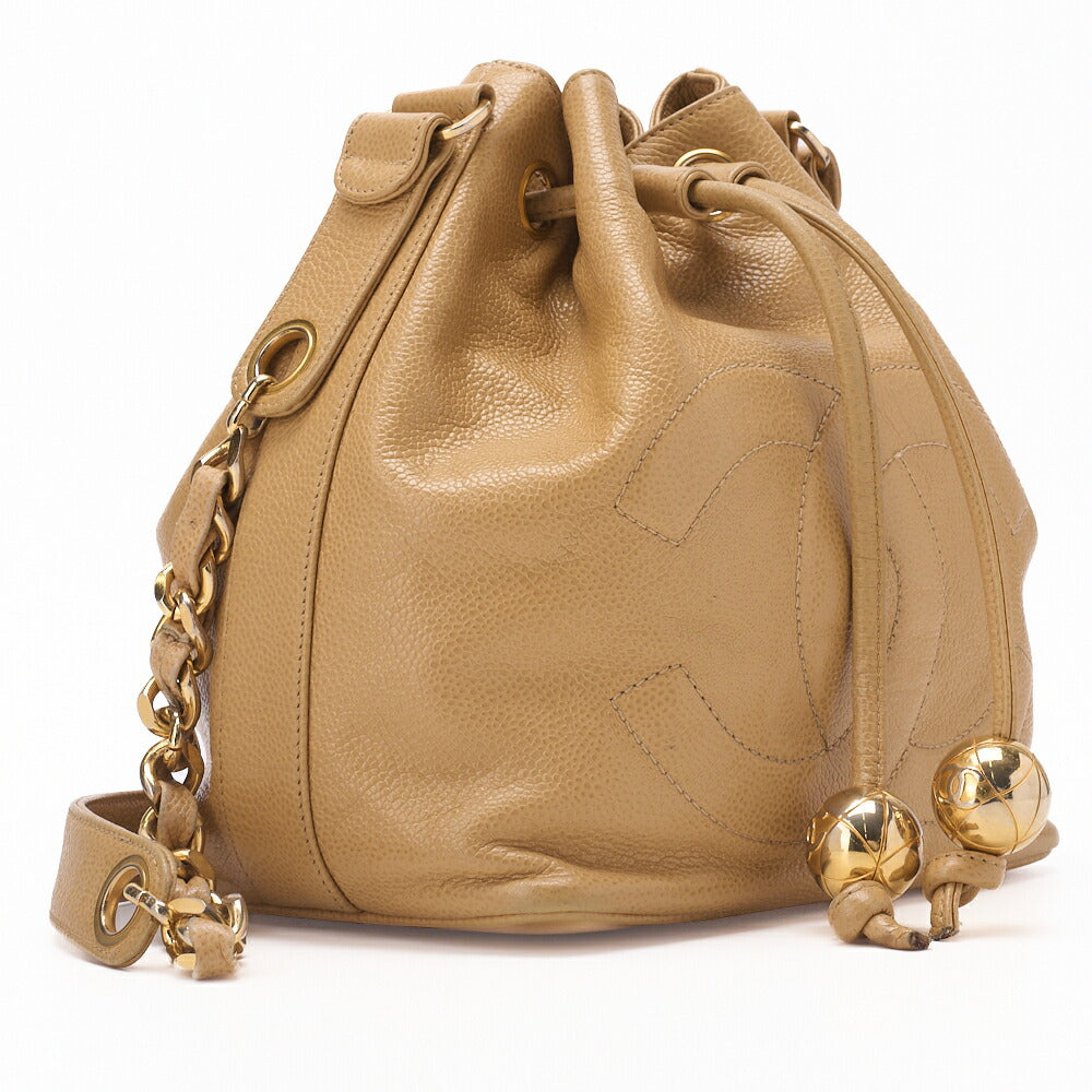 Pre-Owned Schultertasche Coco Mark Kordelzug Ball Charm Kaviarleder Beige Goldfarbene Hardware Pre-Owned